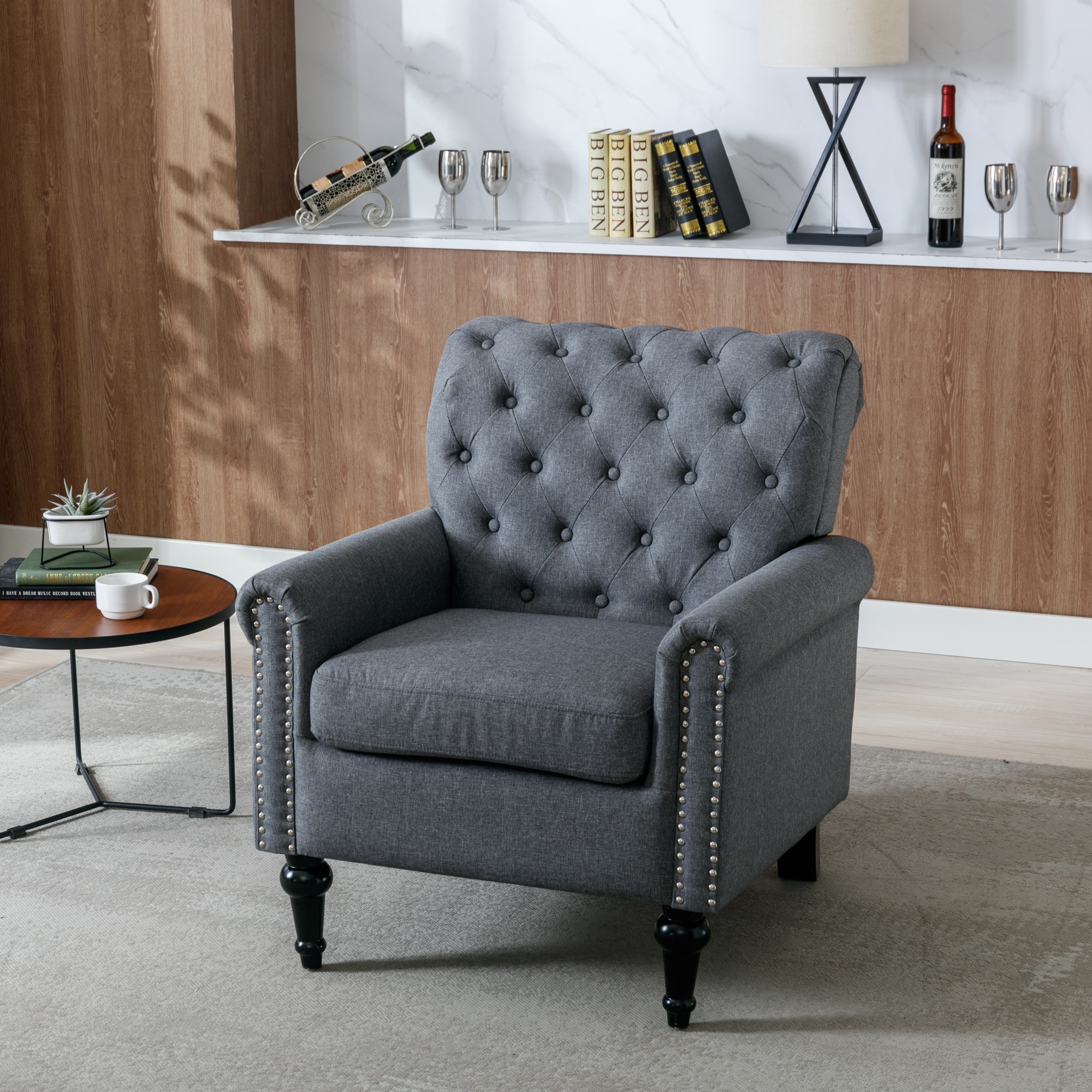 Linen Fabric Comfy Accent Arm Chair