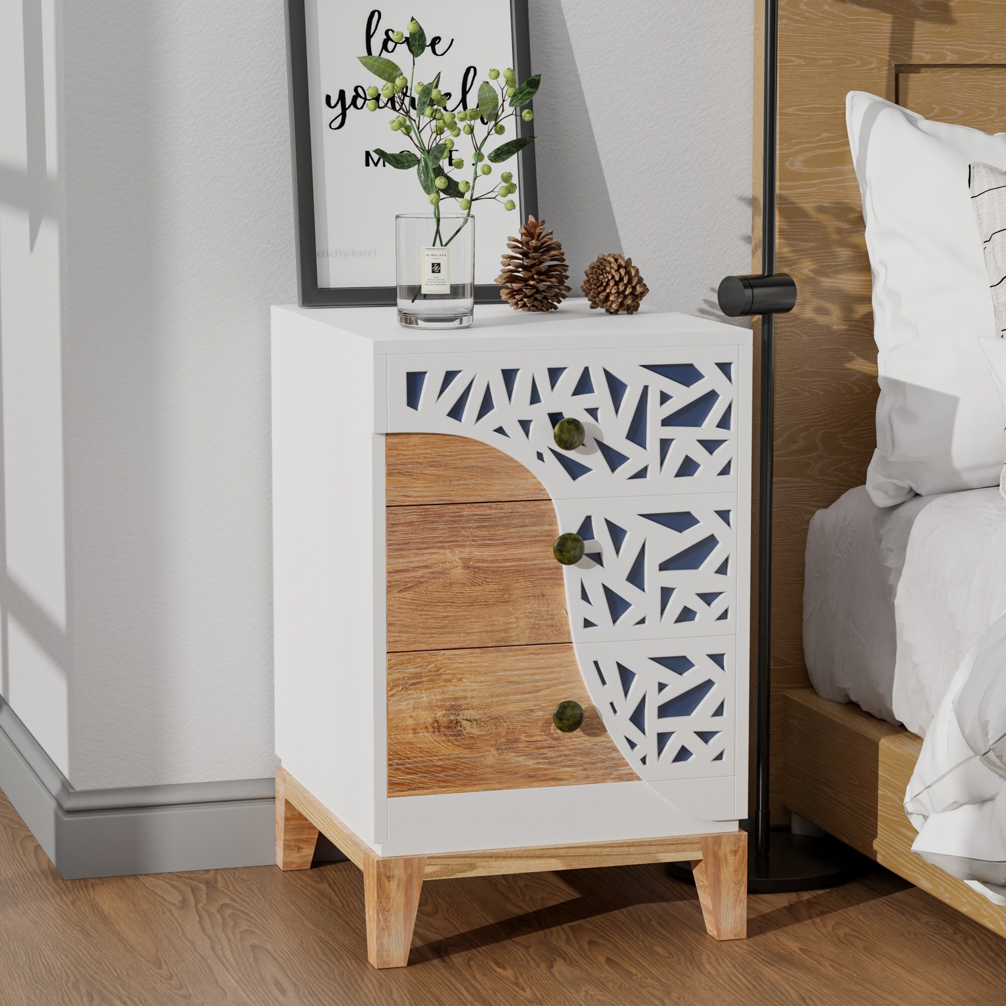 ComfyStyle 3-Drawer Handmade Texture Pattern Side Table