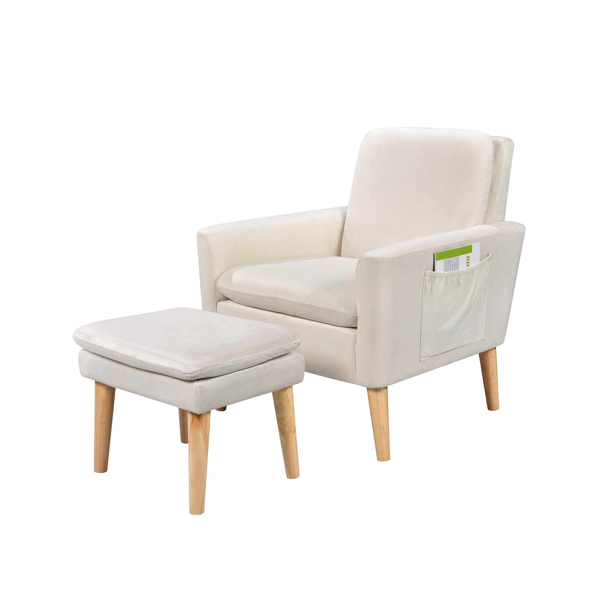 Chic Arm Chair & Ottoman Sets Comfy TVelvet Padded Seat Accent Chair