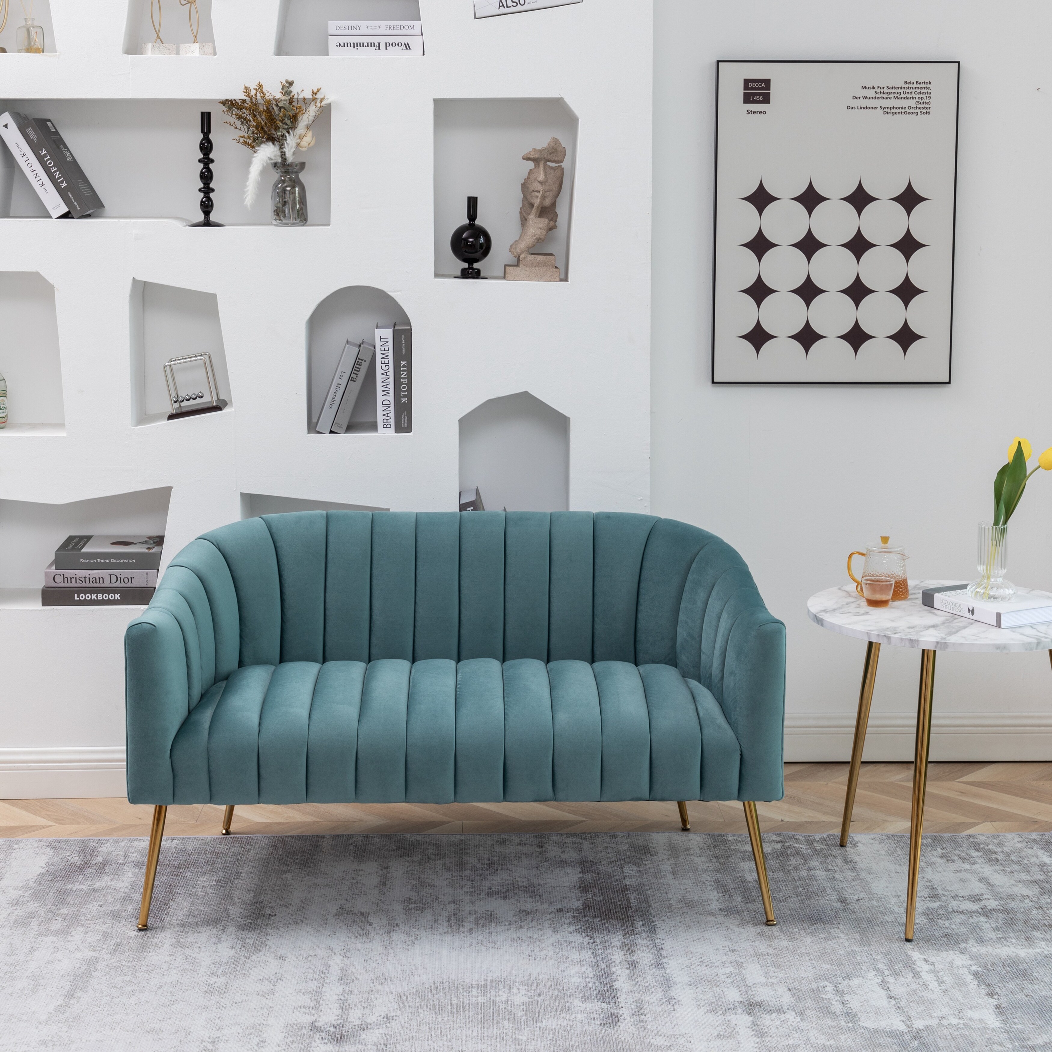 Modern Glam Comfy 50" Metal Legs Curved Sofa 2 Seaters Loveseat with Tufted Back