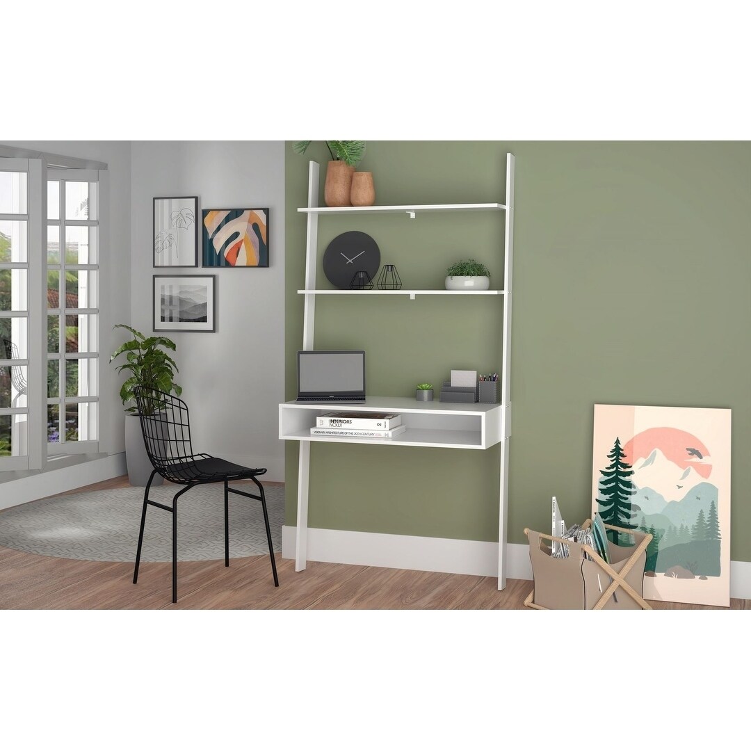 Cooper Ladder Desk with 2 Floating Shelves by Manhattan Comfort