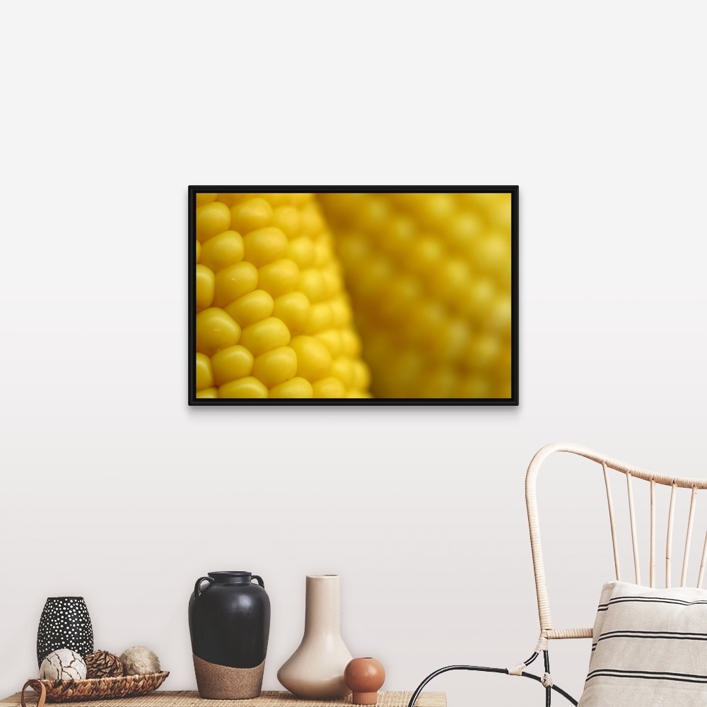 "Close-up of fresh corn" Black Float Frame Canvas Art