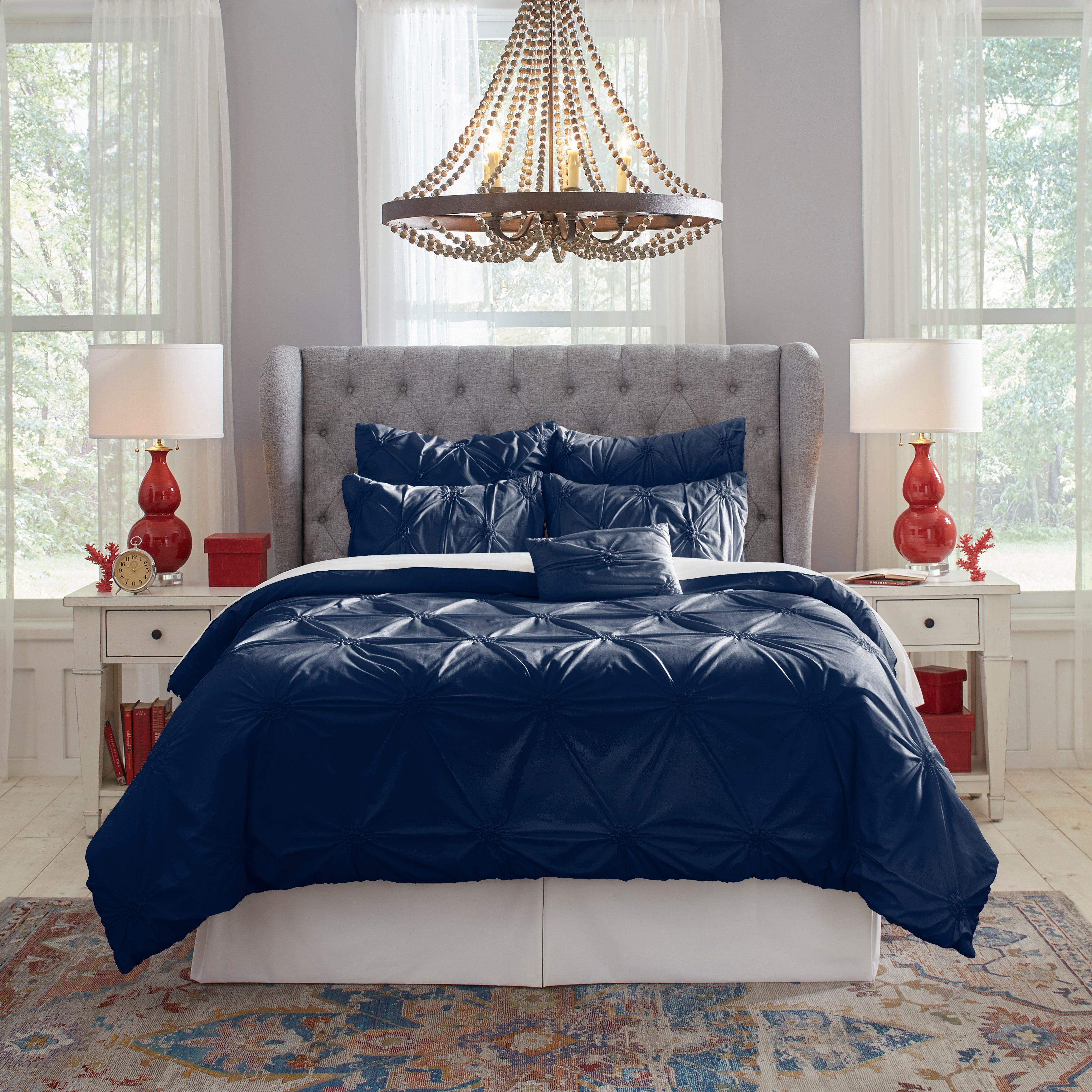 Pointehaven Knotted Oversized Pintuck Percale Cotton Comforter Set