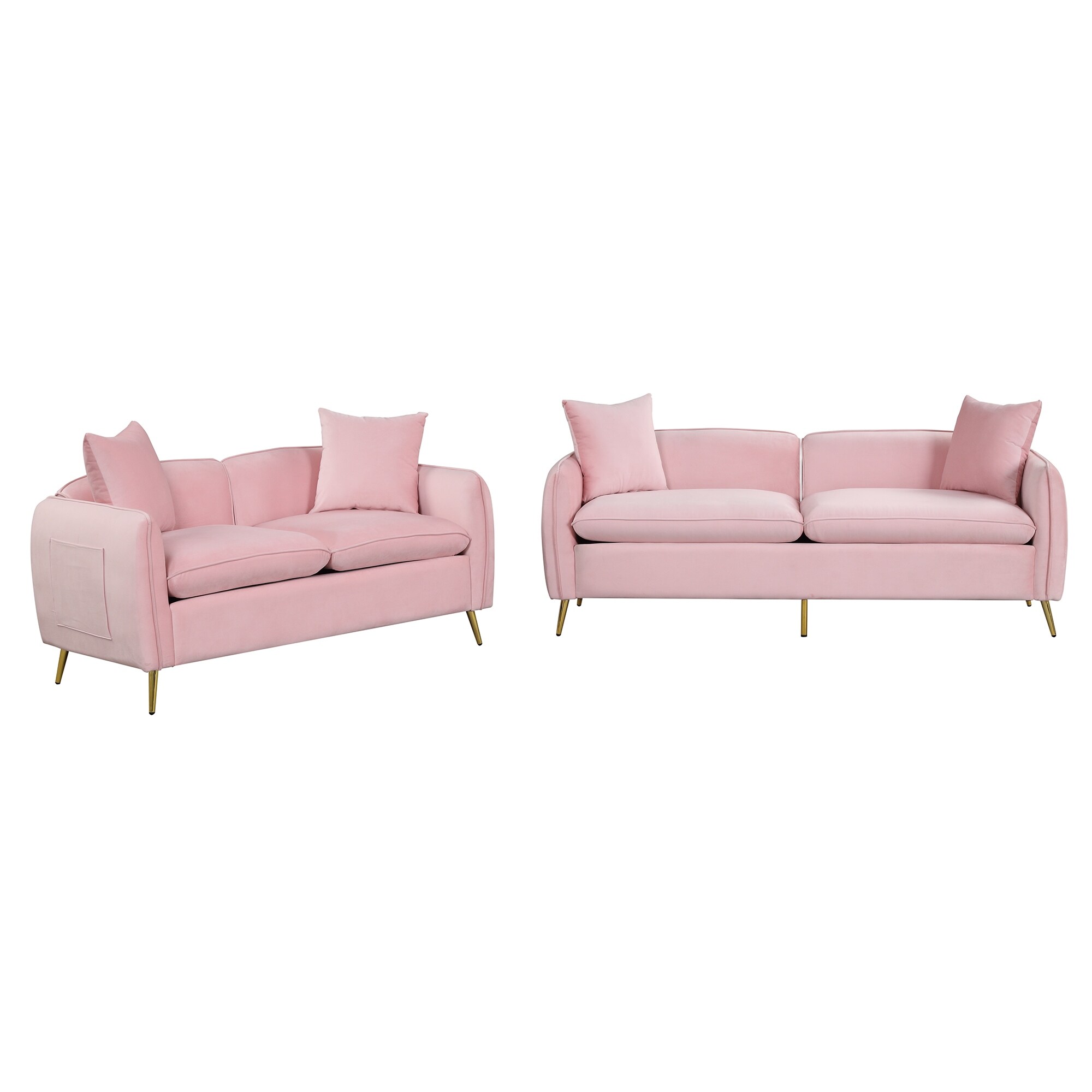 2 Piece Velvet Upholstered Sofa Sets, Loveseat and 3 Seat Couch Set
