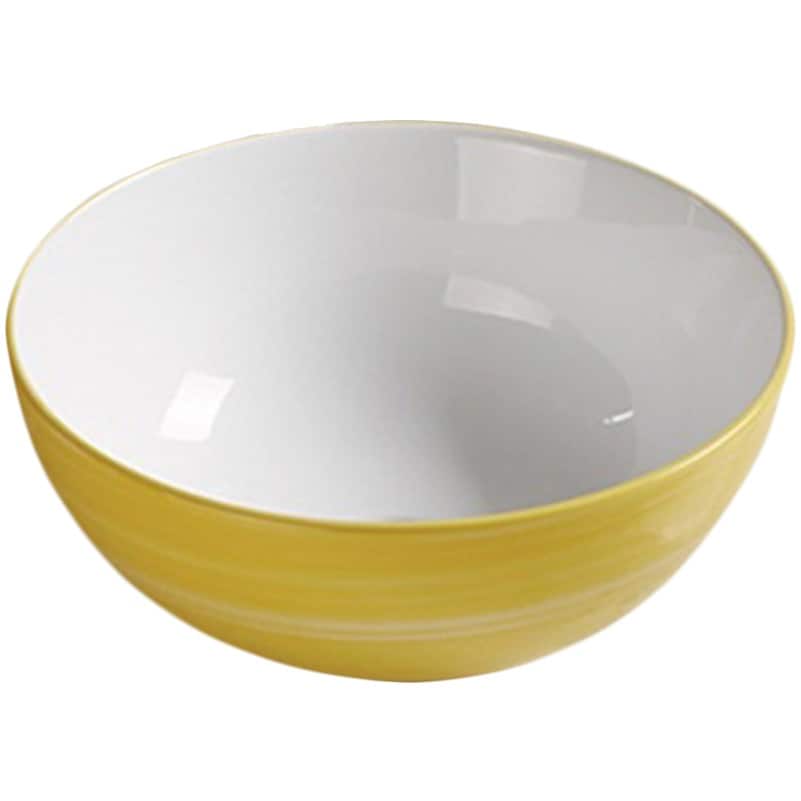 American Imaginations 14.09-in. W Above Counter Yellow Swirl-White Vessel for Wall Mount Wall Mount Drilling