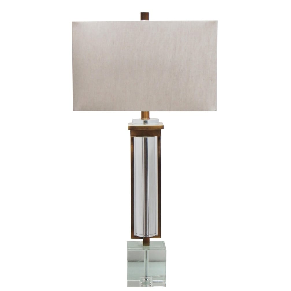Clear Crystal Table Lamp With Brass Frame And White Shade
