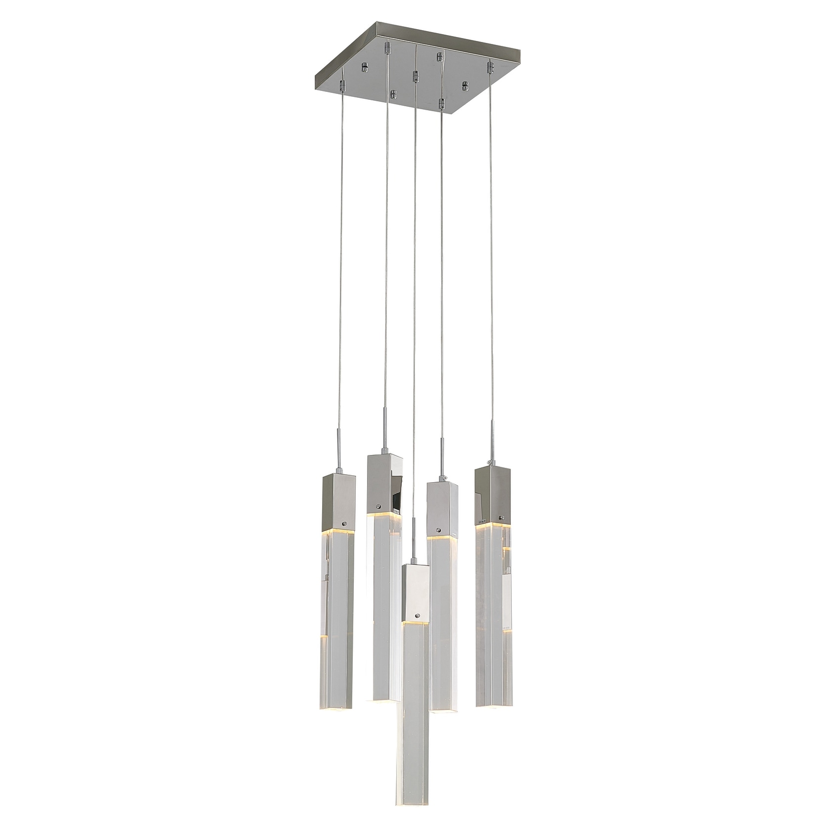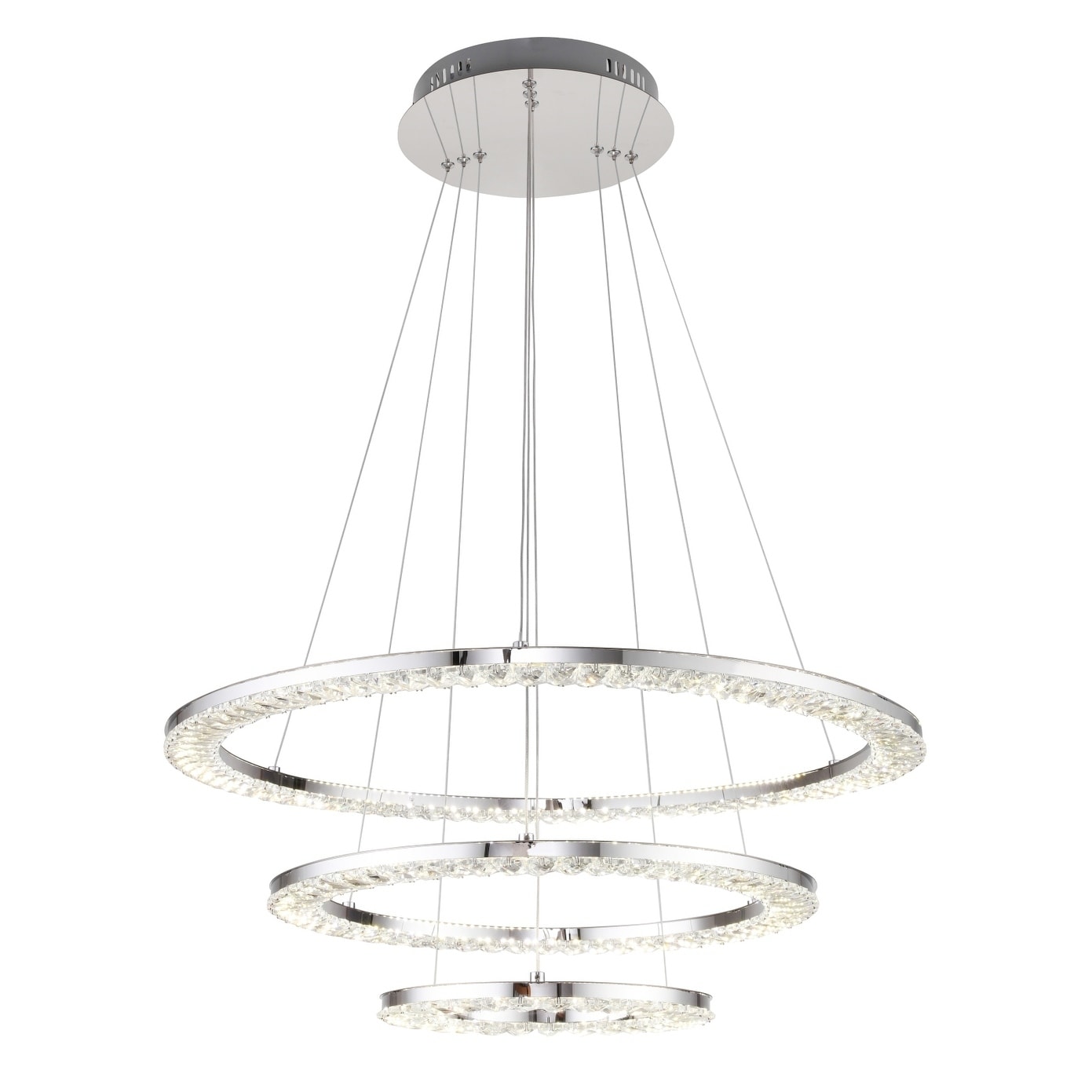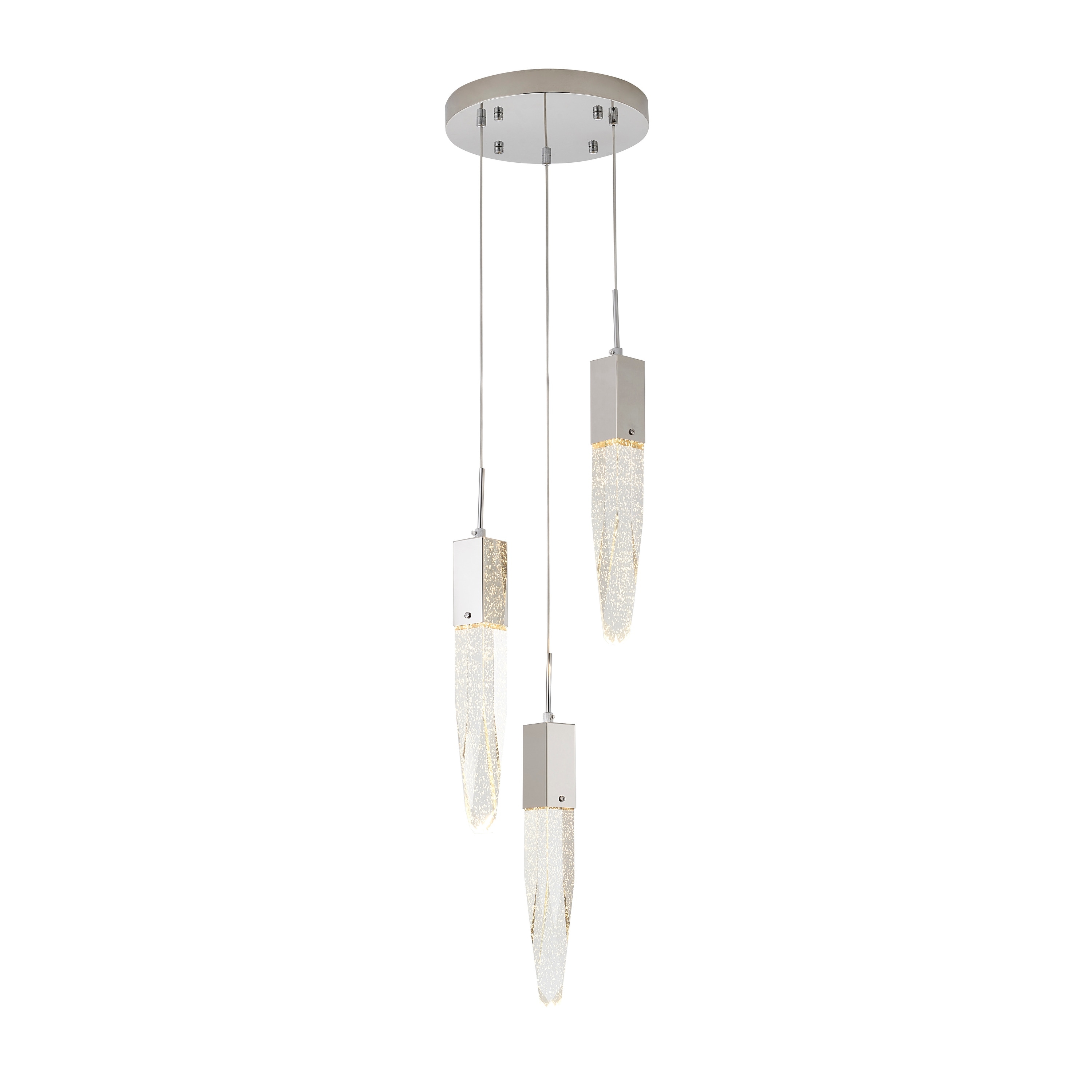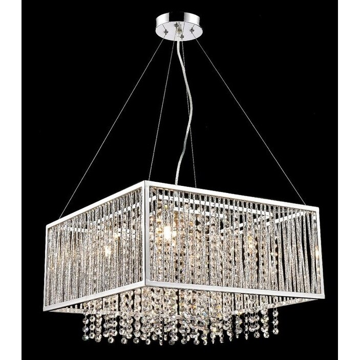 Dimmable LED Pendant Lighting with Stainless Steel Frame and Clear Crystal Accents