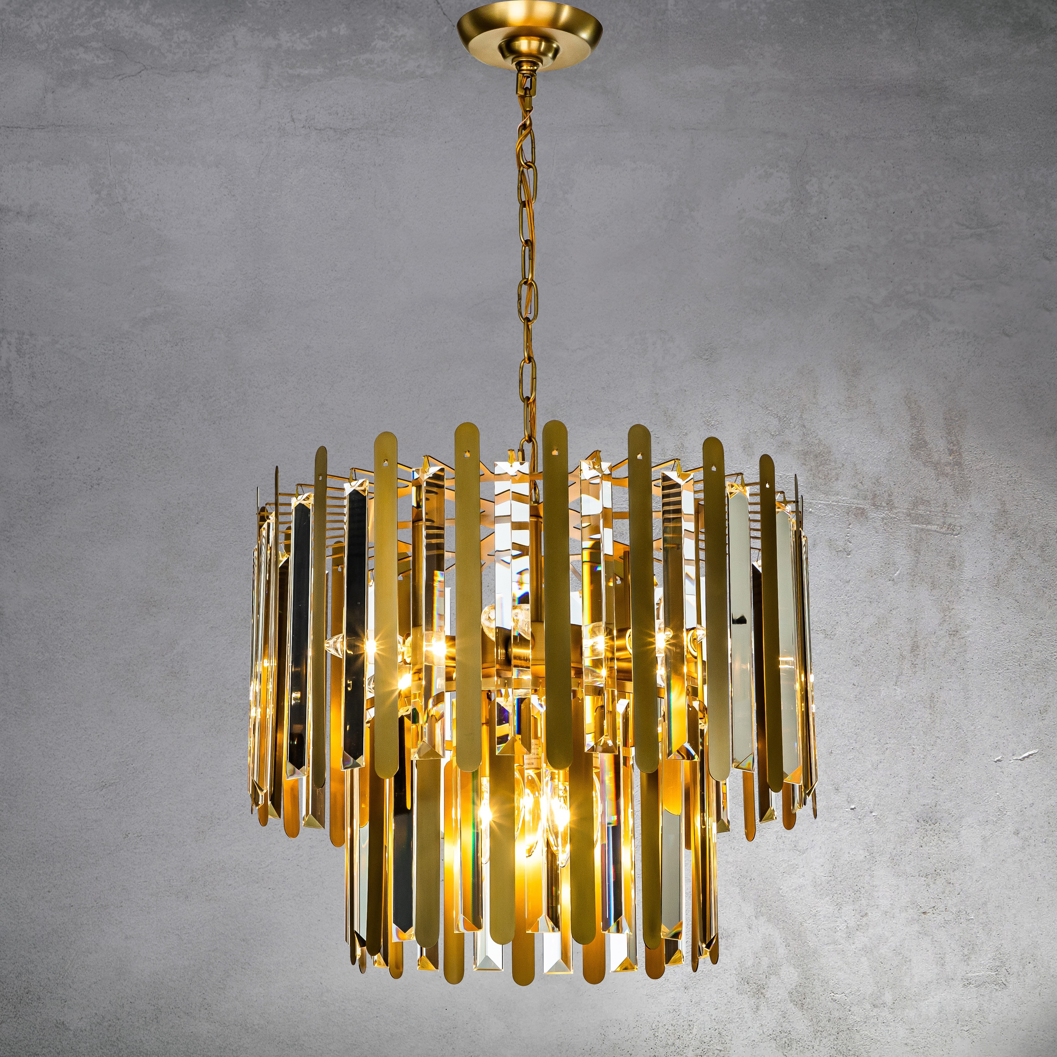 8-Light Gold Stainless Steel Chandelier With Clear Crystals