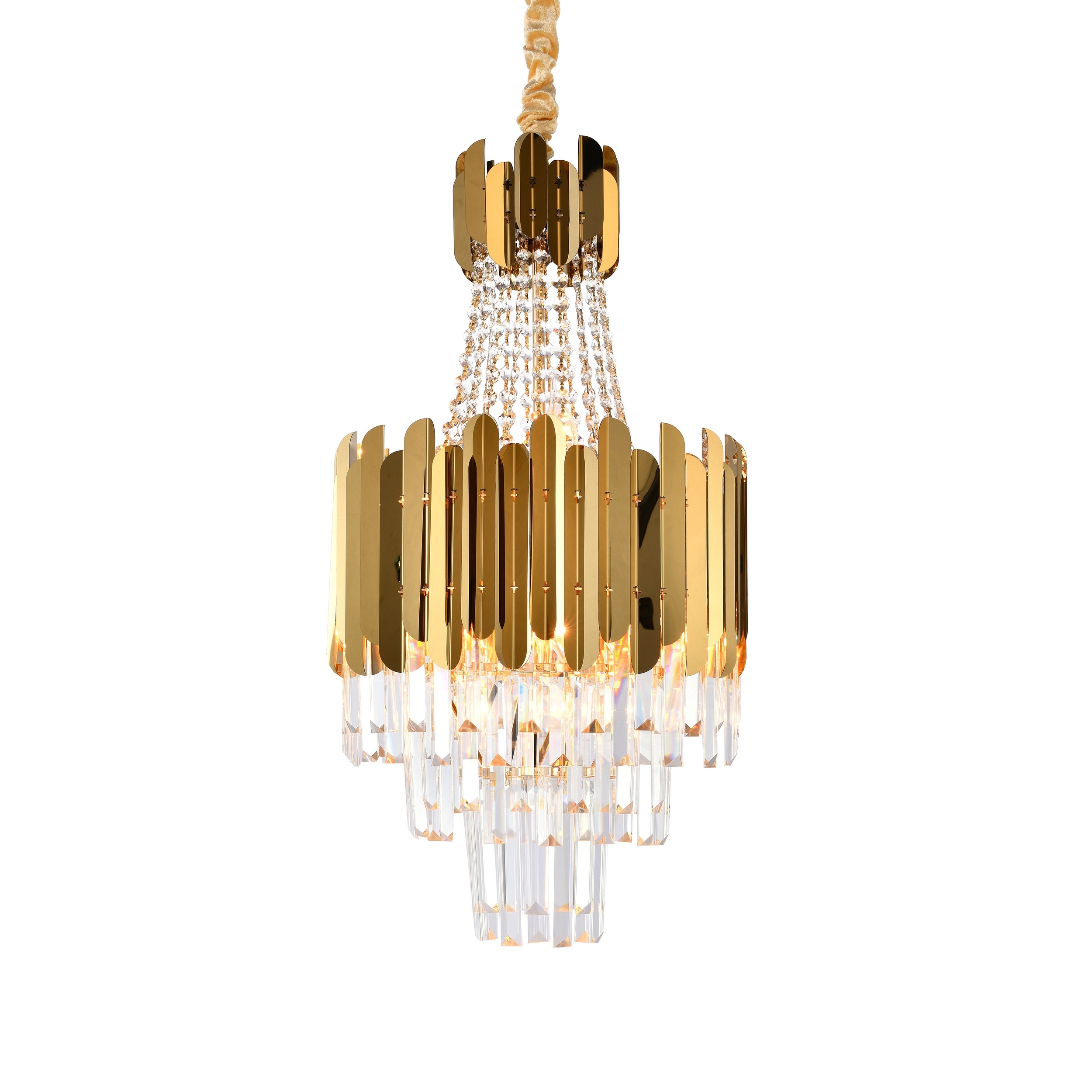 Gold Stainless Steel LED Chandelier With Clear Crystals