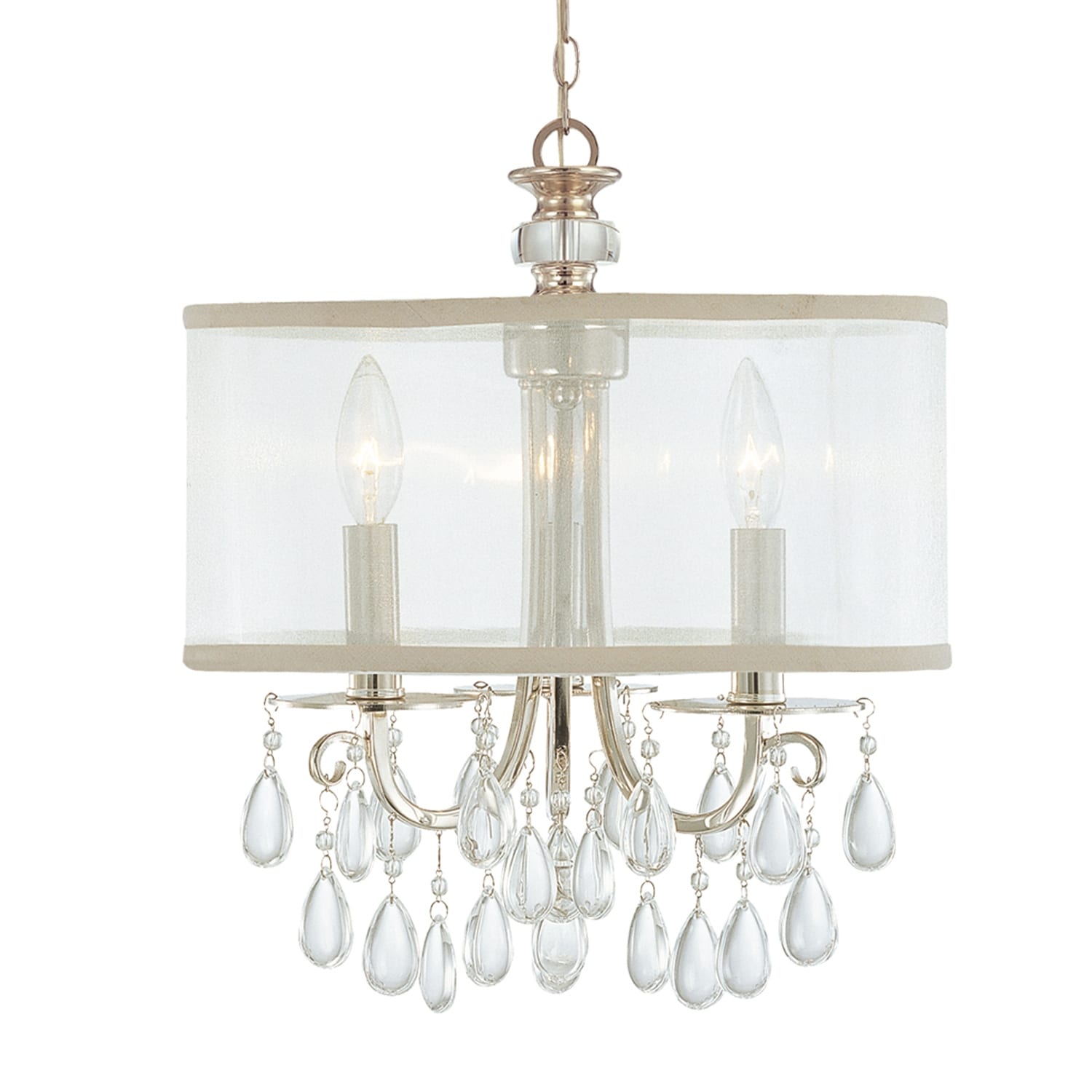 Hampton 3 Light Chrome Clear Crystal Drum Shade Chandelier - 14'' W x 17'' H