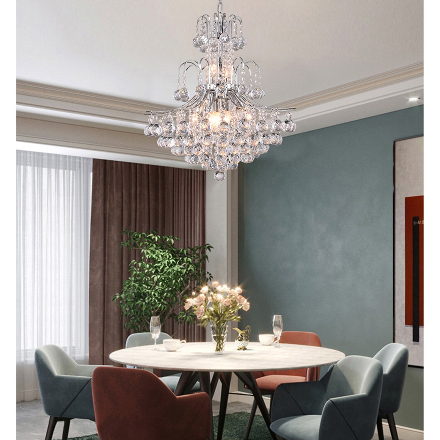 12" Chrome Metal Chandelier With Clear Iceberg Crystals