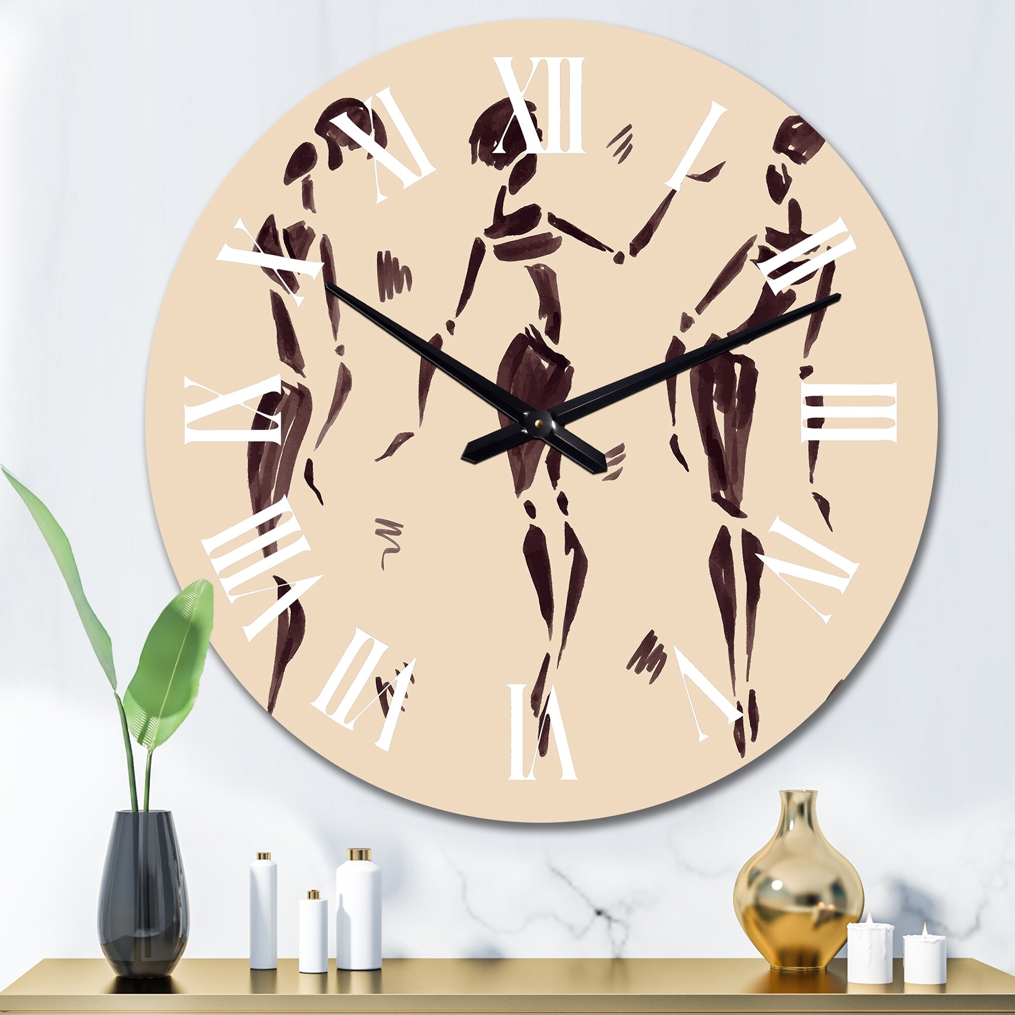 Designart 'Abstract Brown Dancers' Glam wall clock