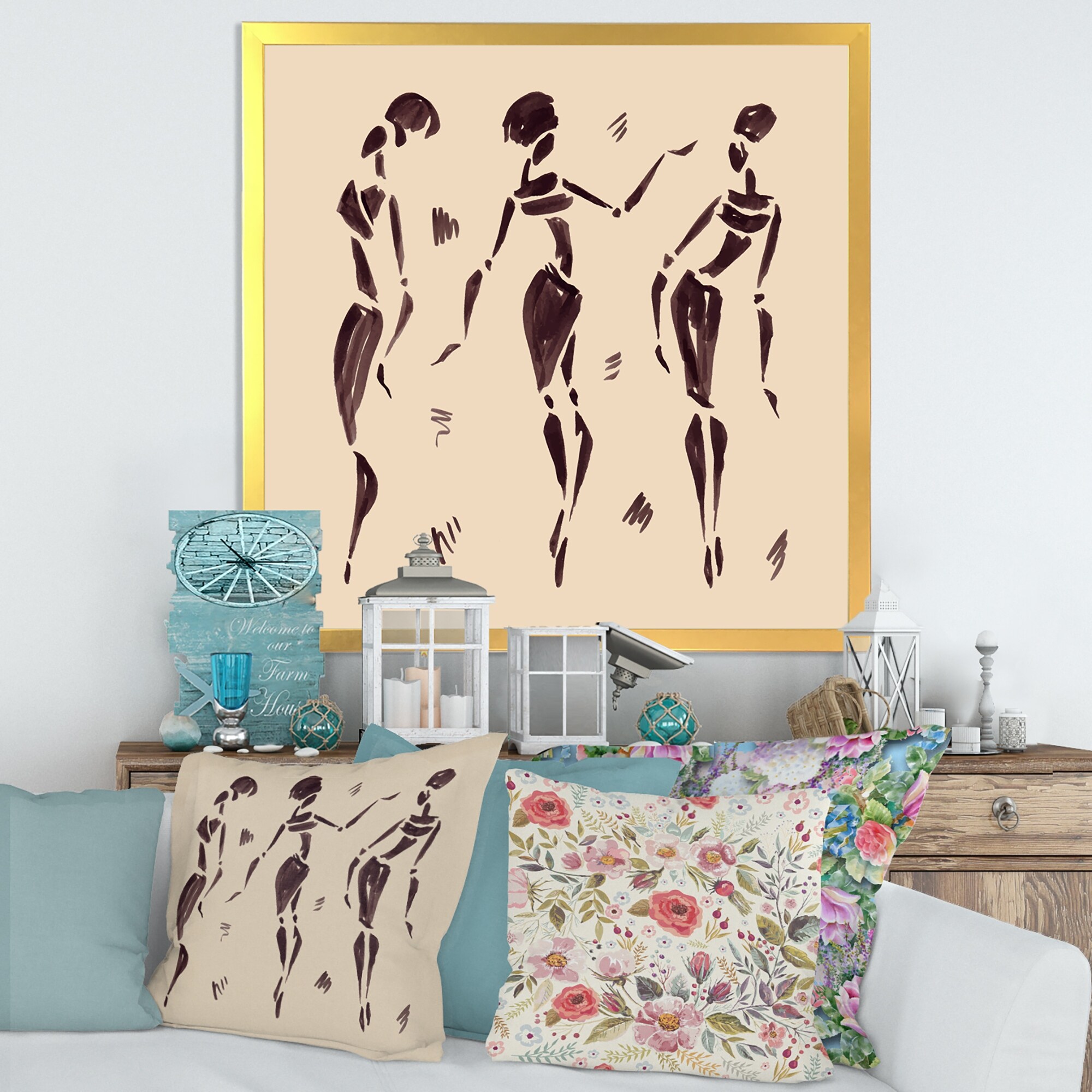 Designart "Abstract Brown Dancers" Glam Framed Art Print