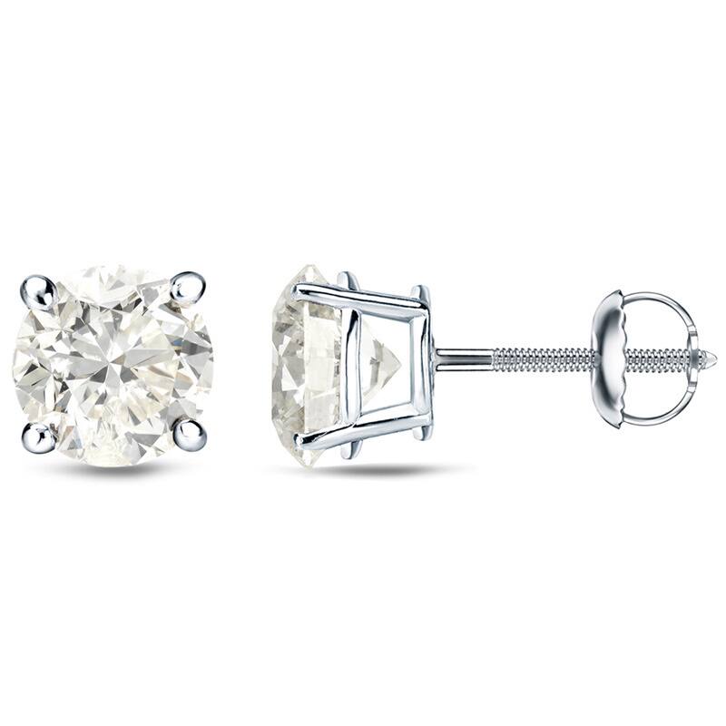 1ct Round Cut Diamond Stud Earrings in Yellow Gold with Screw Backs
