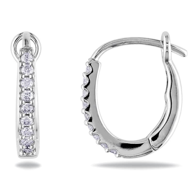 Miadora Signature Collection 10k White Gold 1/7ct TDW Diamond Hoop Earrings