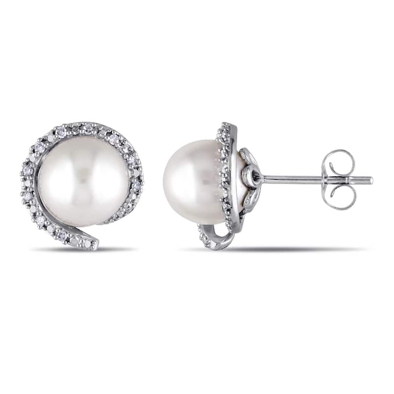 Miadora 10k White Gold Cultured Freshwater Pearl and 1/10ct TDW Diamond Stud Earrings (H-I, I2-I3) (8-8.5 mm)