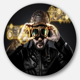 Designart 'Indian Warrior with Wolves' Digital Art Large Disc Metal Wall art
