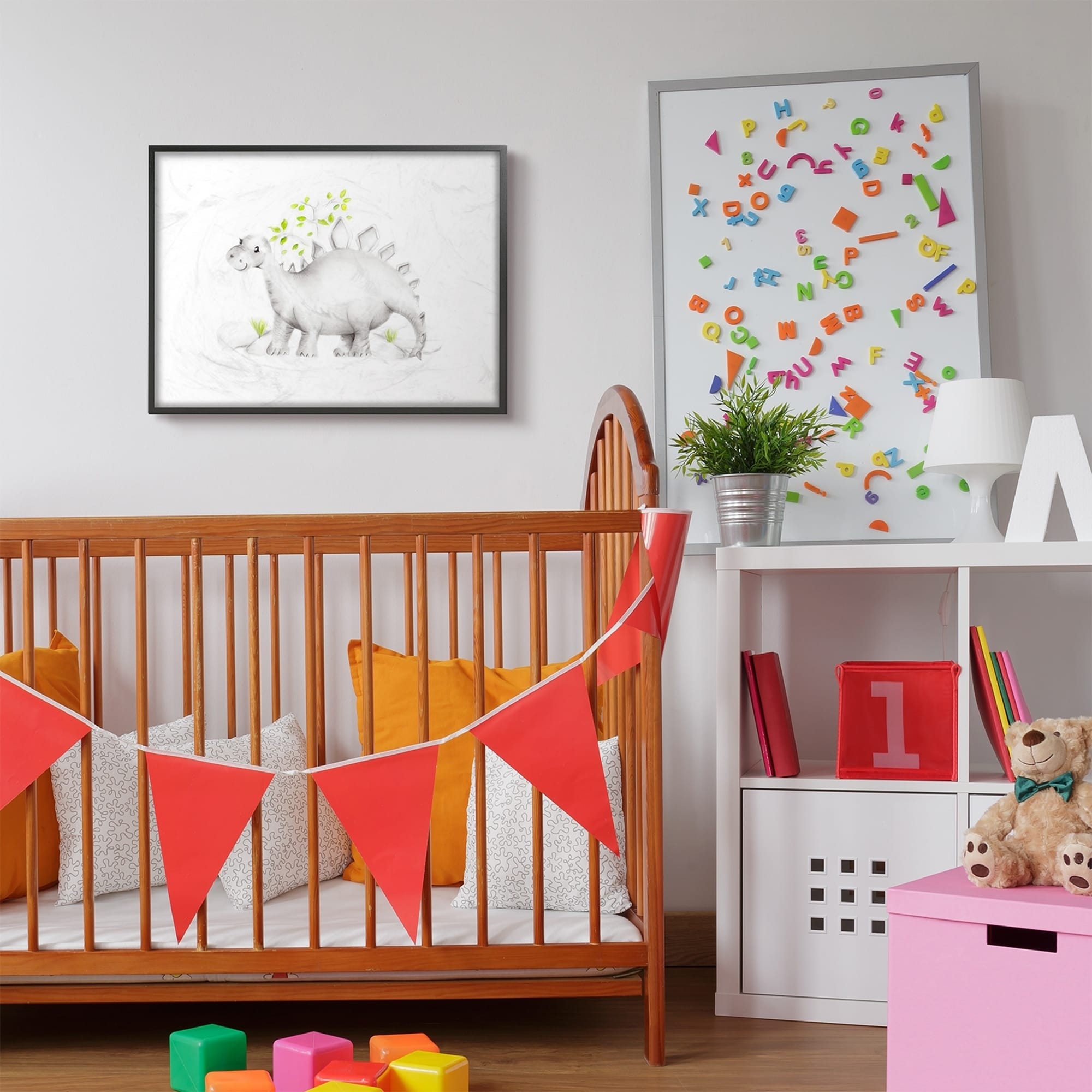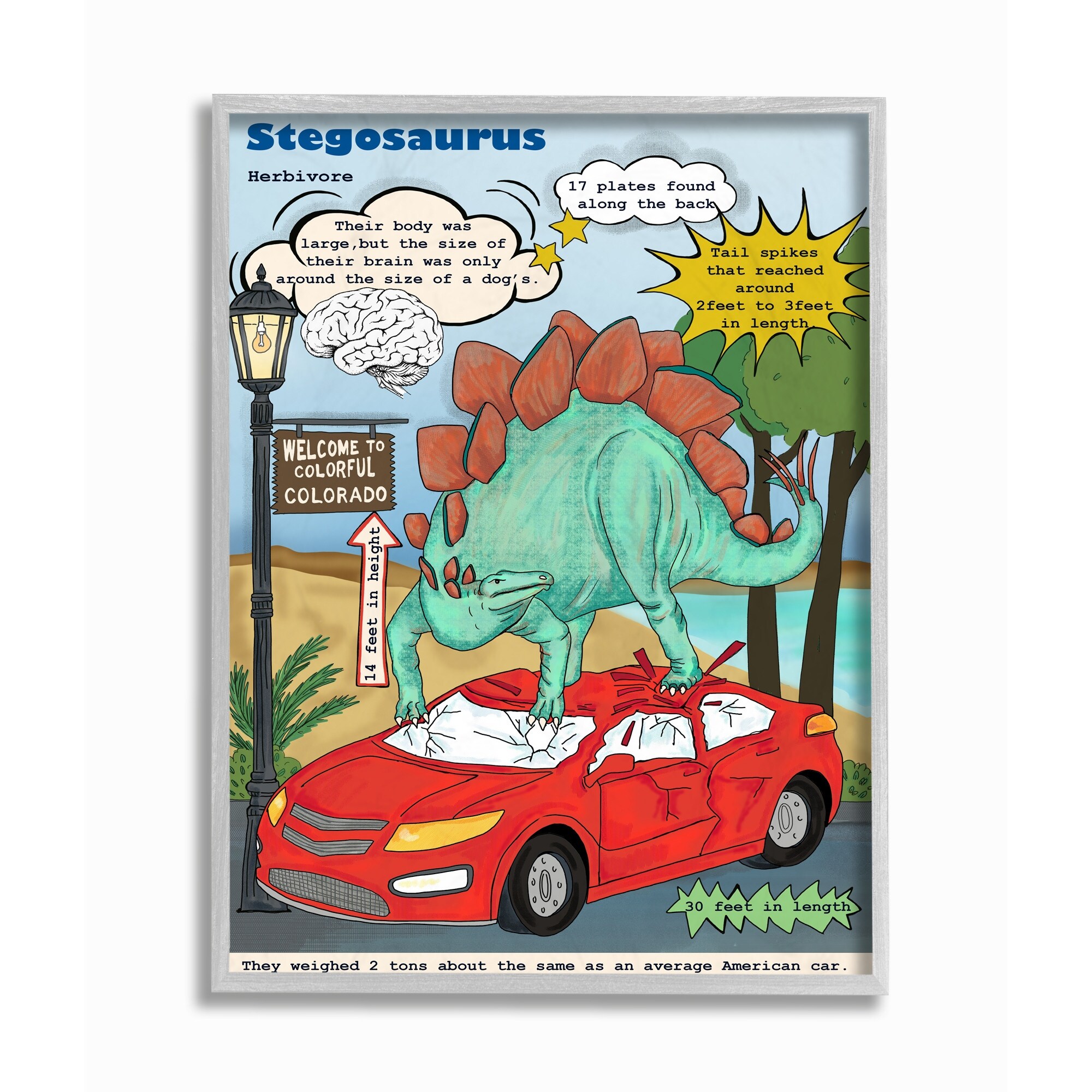 Stupell Industries Fun Dinosaur Facts Stegosaurus Dino Scene Framed Wall Art - Multi-Color
