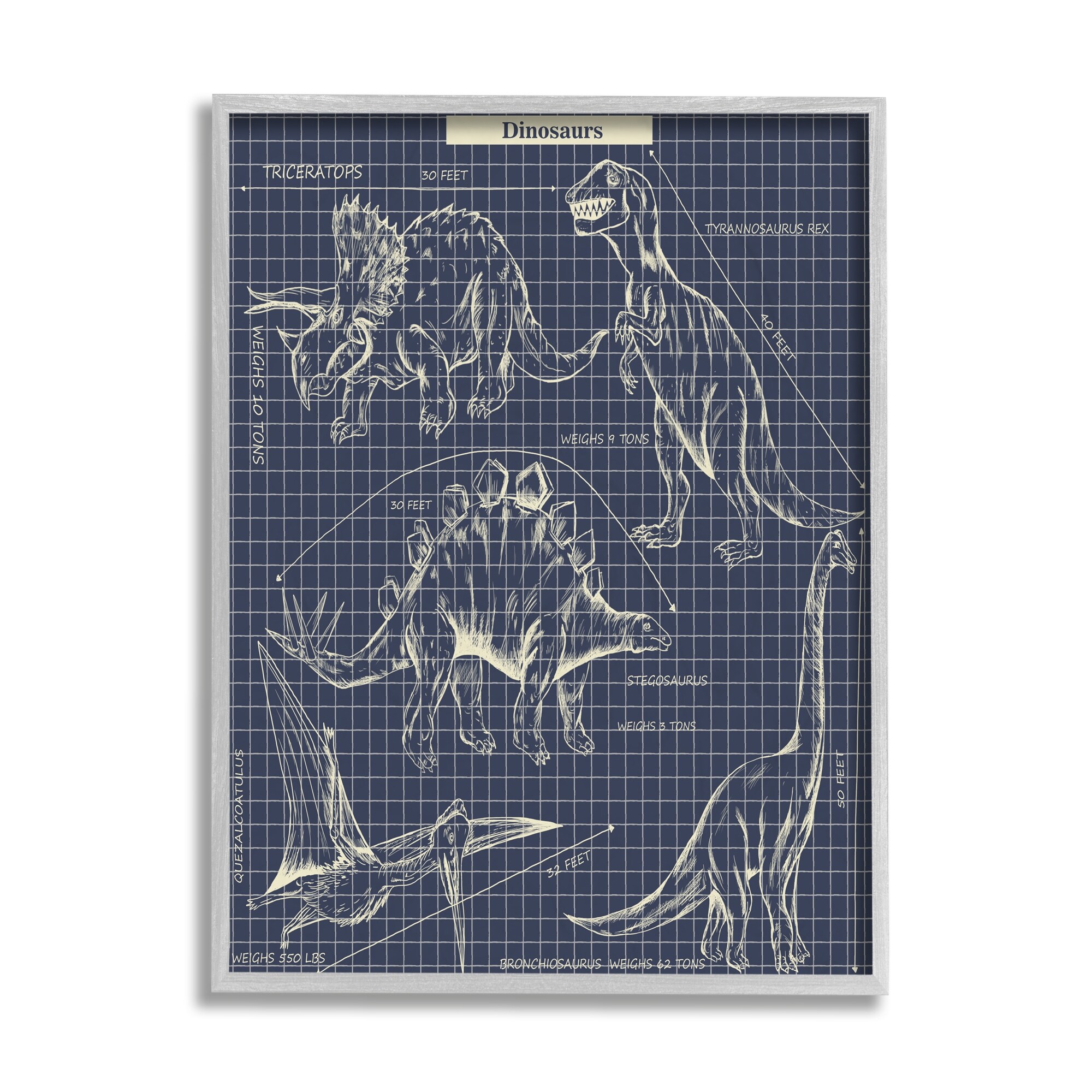 Stupell Vintage Dinosaur Blueprints Dino Fact Graph Framed Wall Art