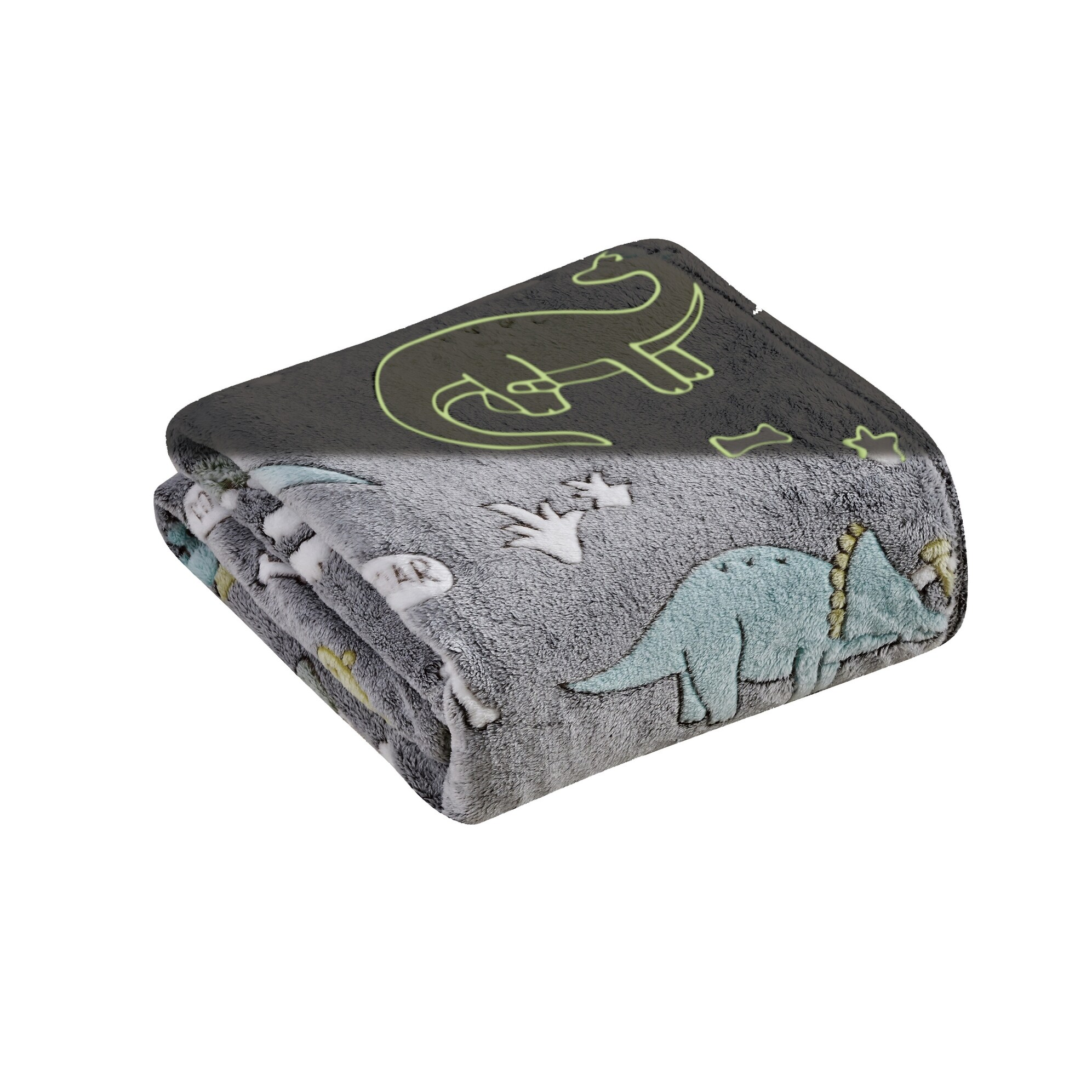 Glow-in-Dark Throw Blanket Gray Dino Friends
