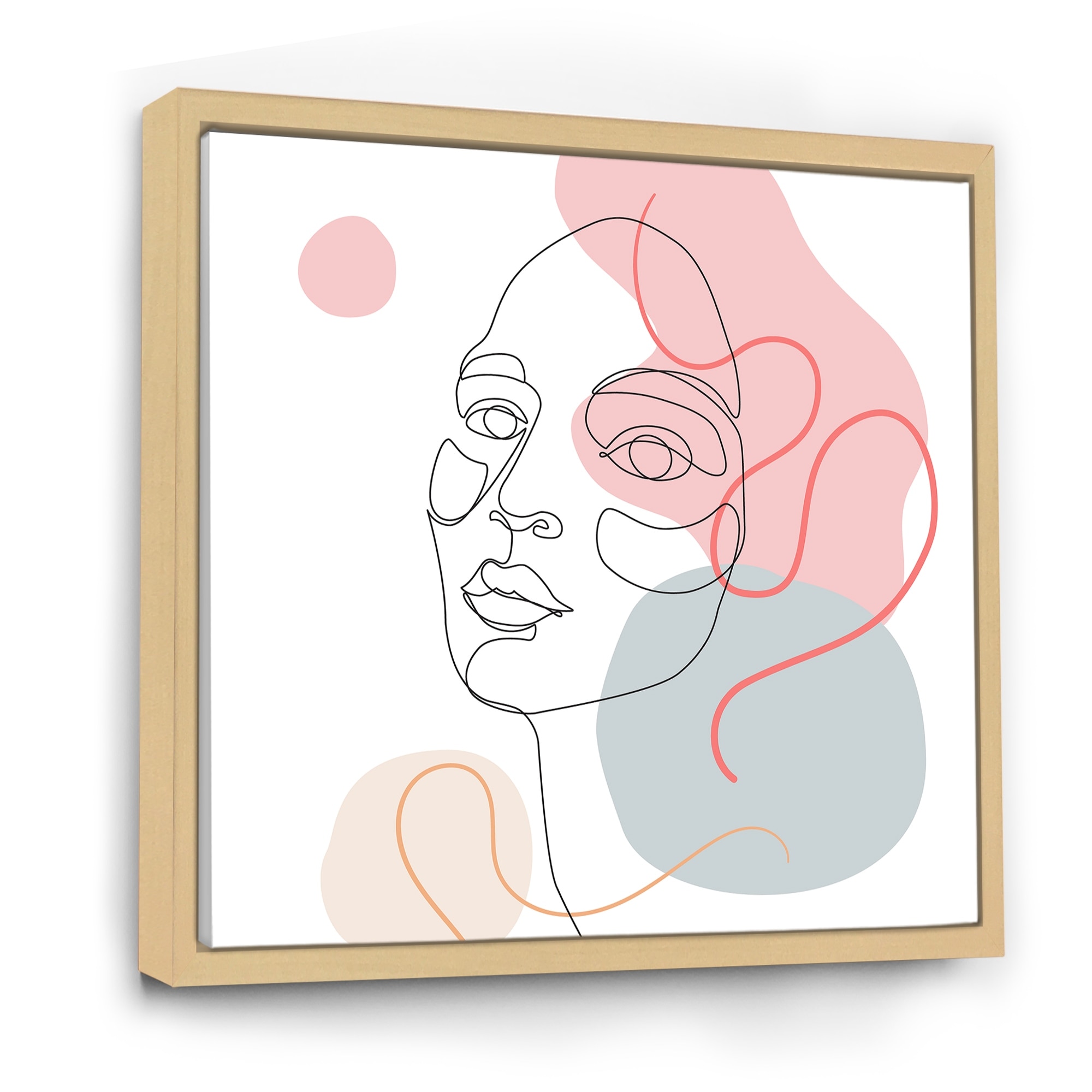 Designart "One Line Drawing of Young Woman in Pastel Tones" Modern Framed Canvas Wall Art Print