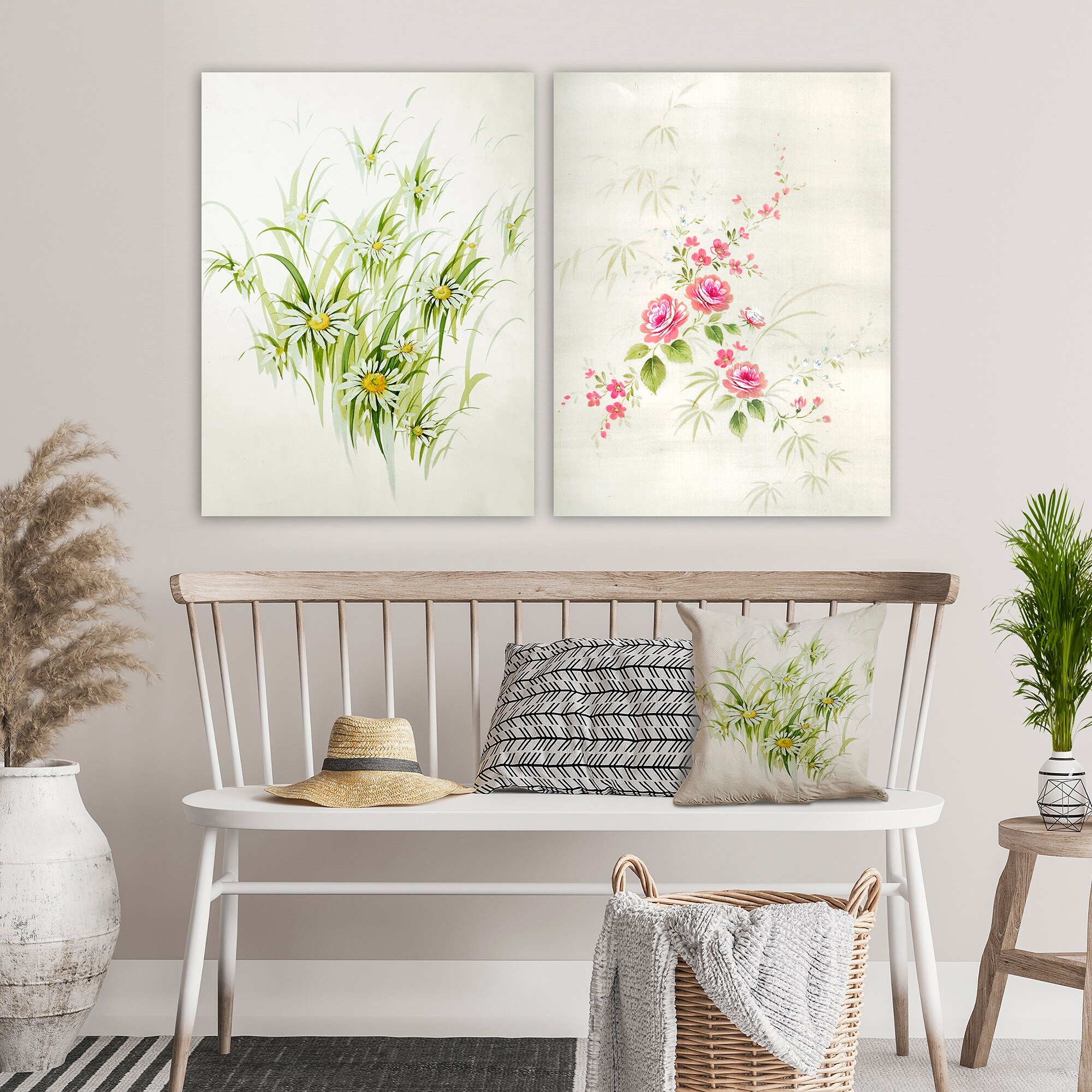 Designart 'Retro Drawing of Flowers Collection I' Botanical Set of 2 Pieces