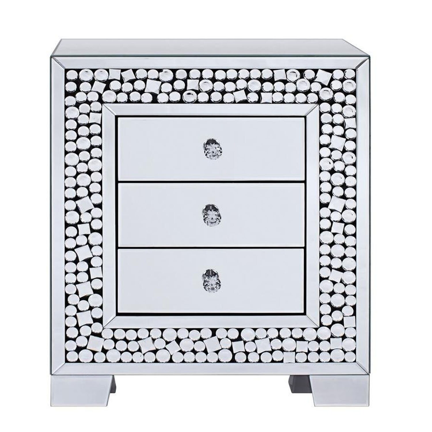 Glam 3 Drawers Nightstand with Dual USB Port, Silver
