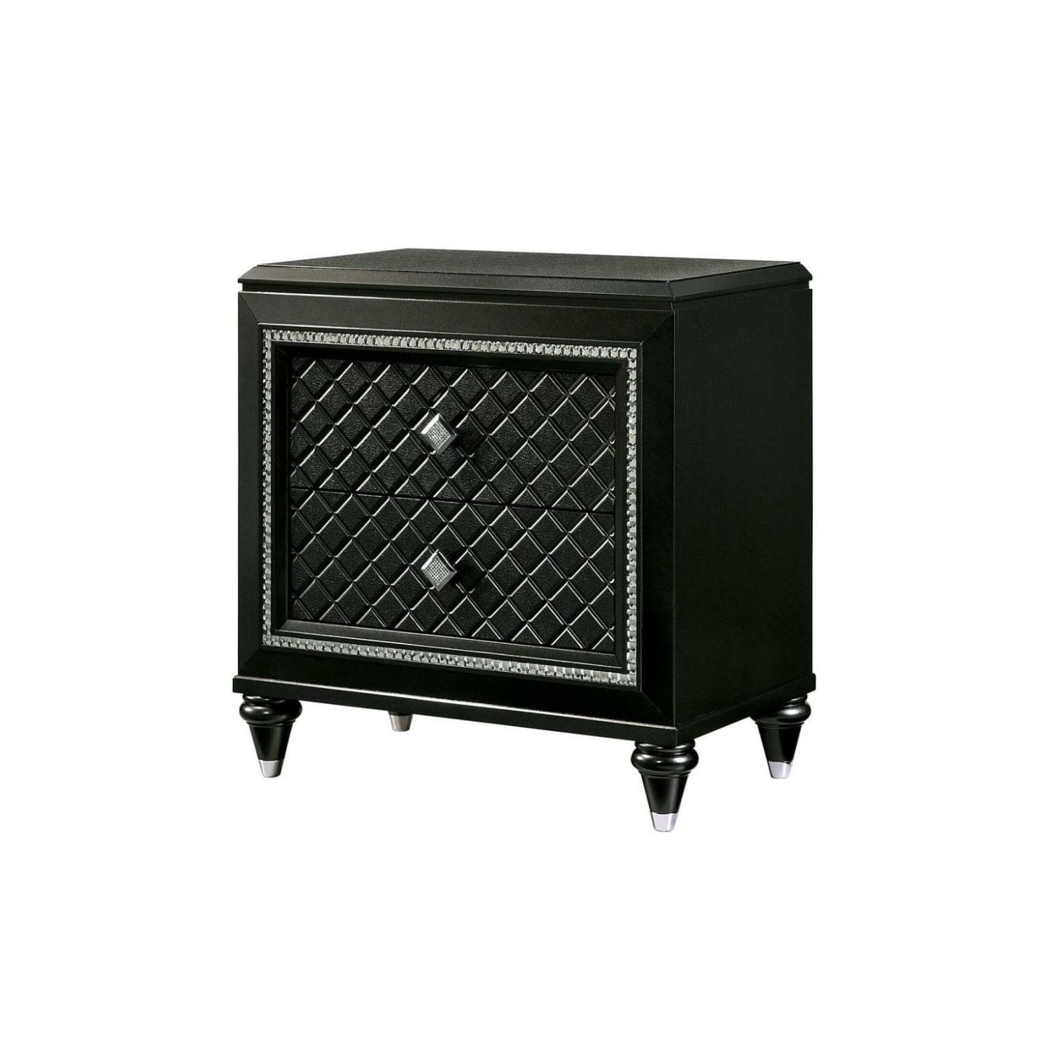 Nightstand with 2 Drawers and Upholstery, Black and Silver