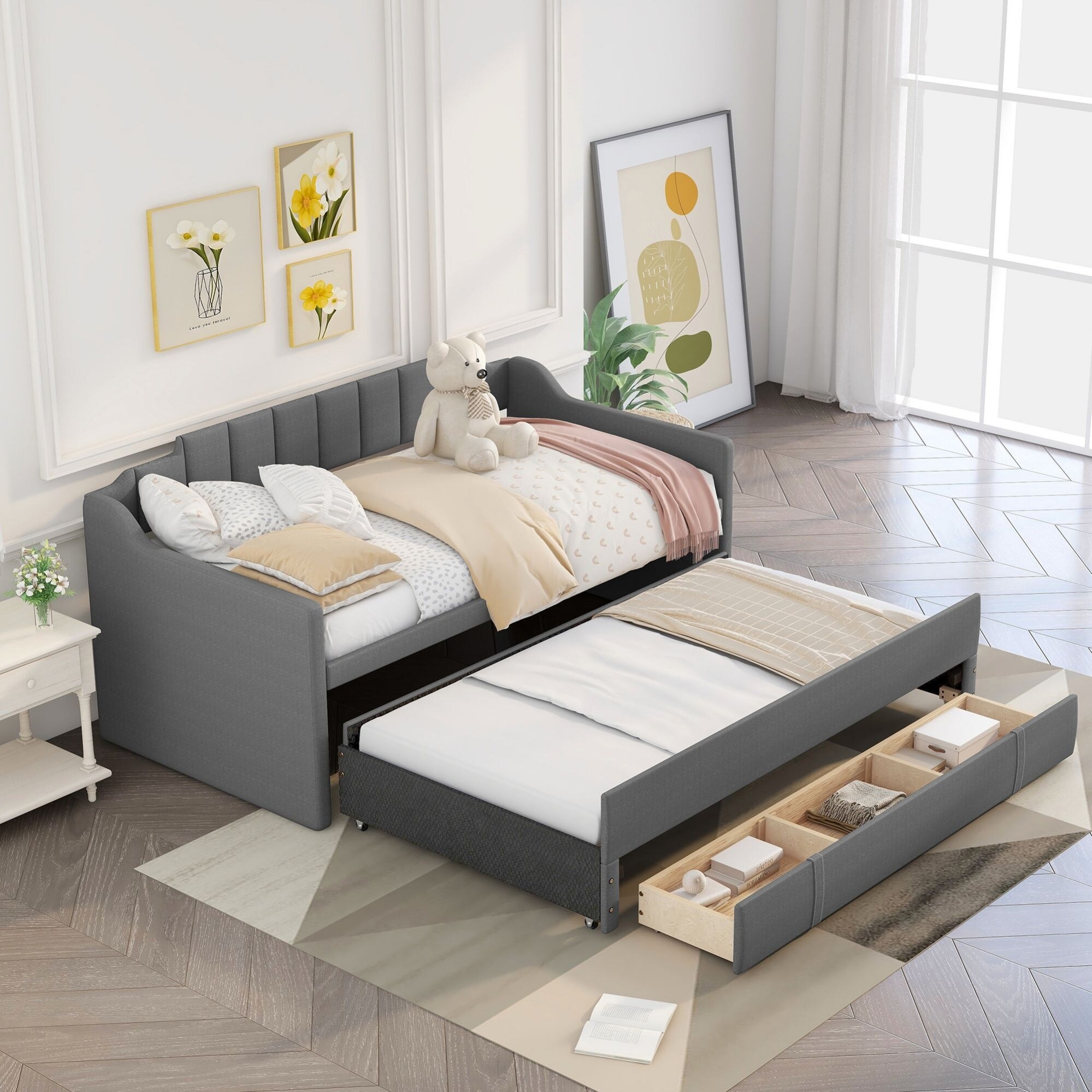 Wooden Daybed with Trundle Bed and Two Storage Drawers