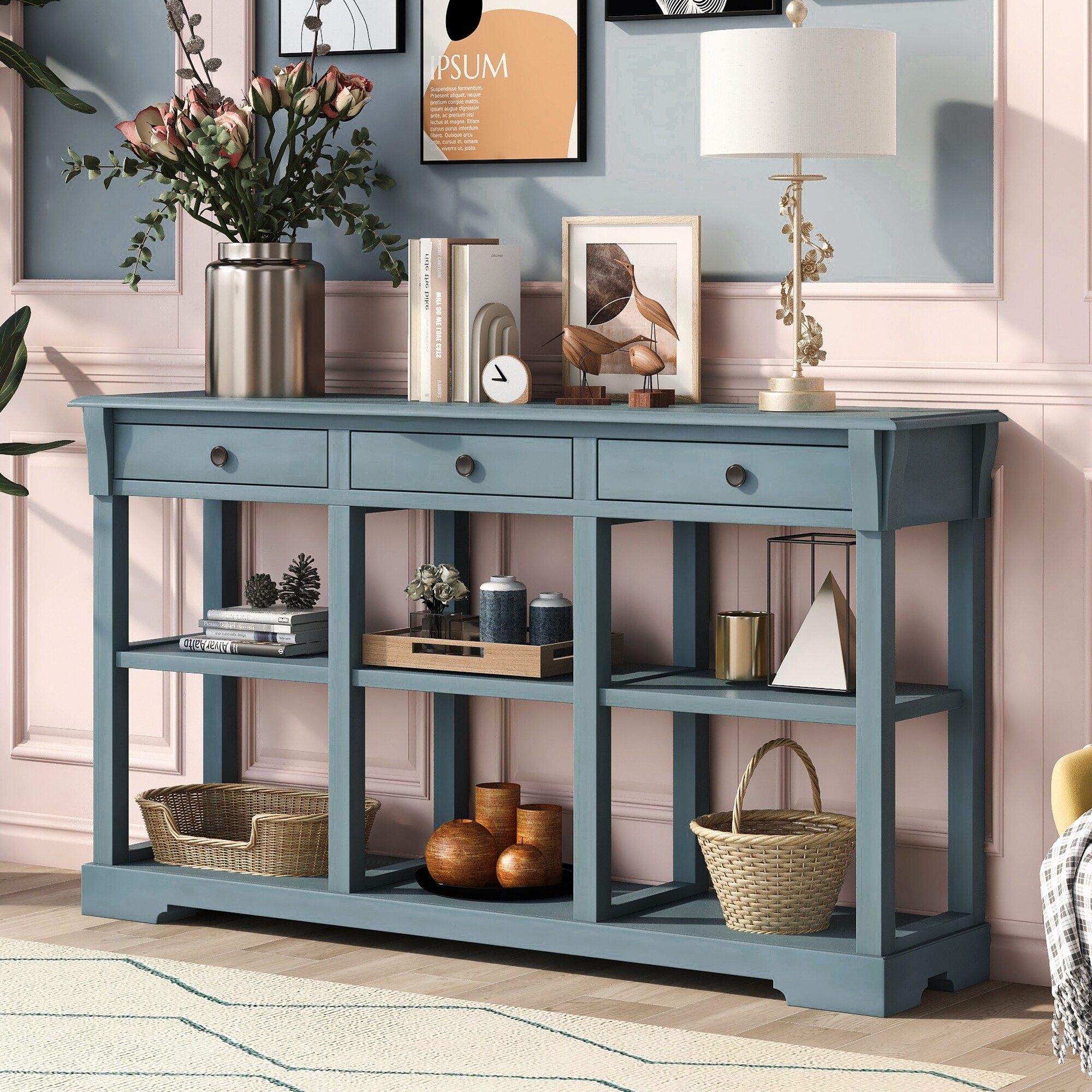 Console Table/Sideboard with Open Shelves and Drawers for Living Room