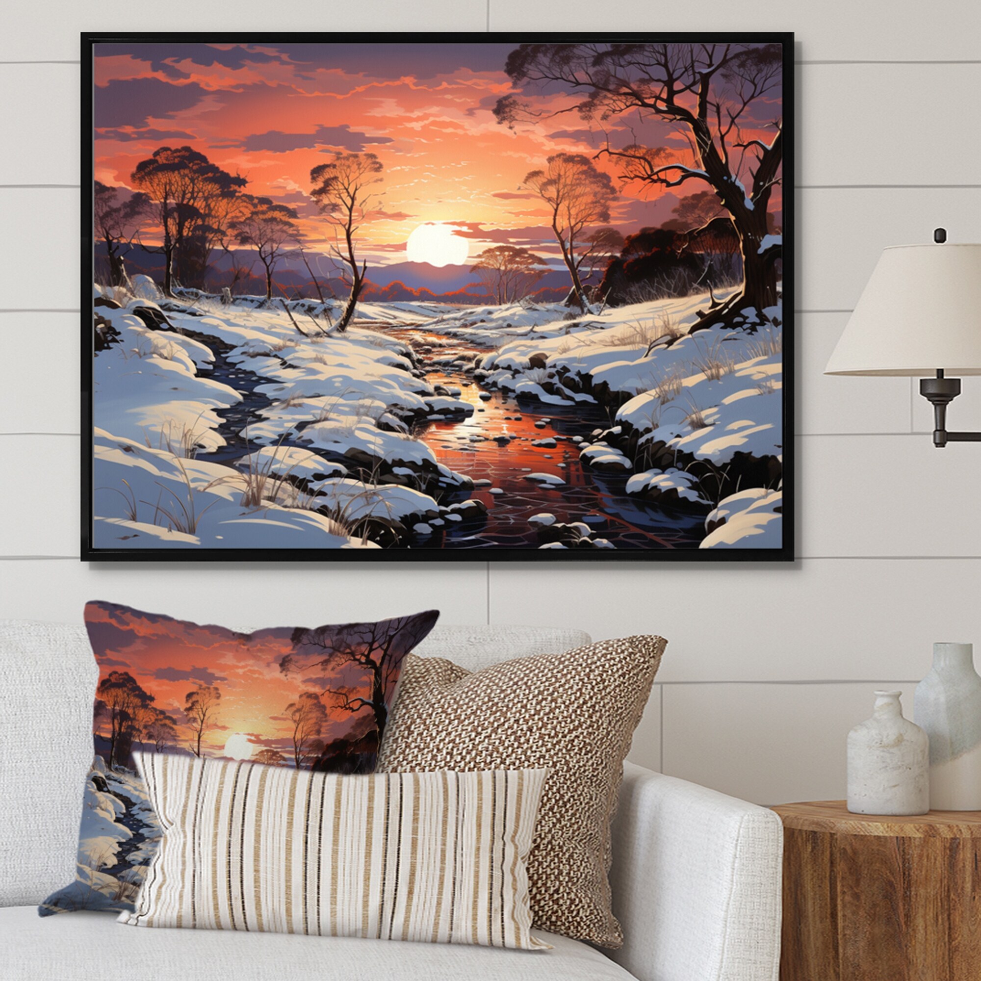 Designart "Winter Winter Dusk" Winter Landscape Framed Canvas Wall Art