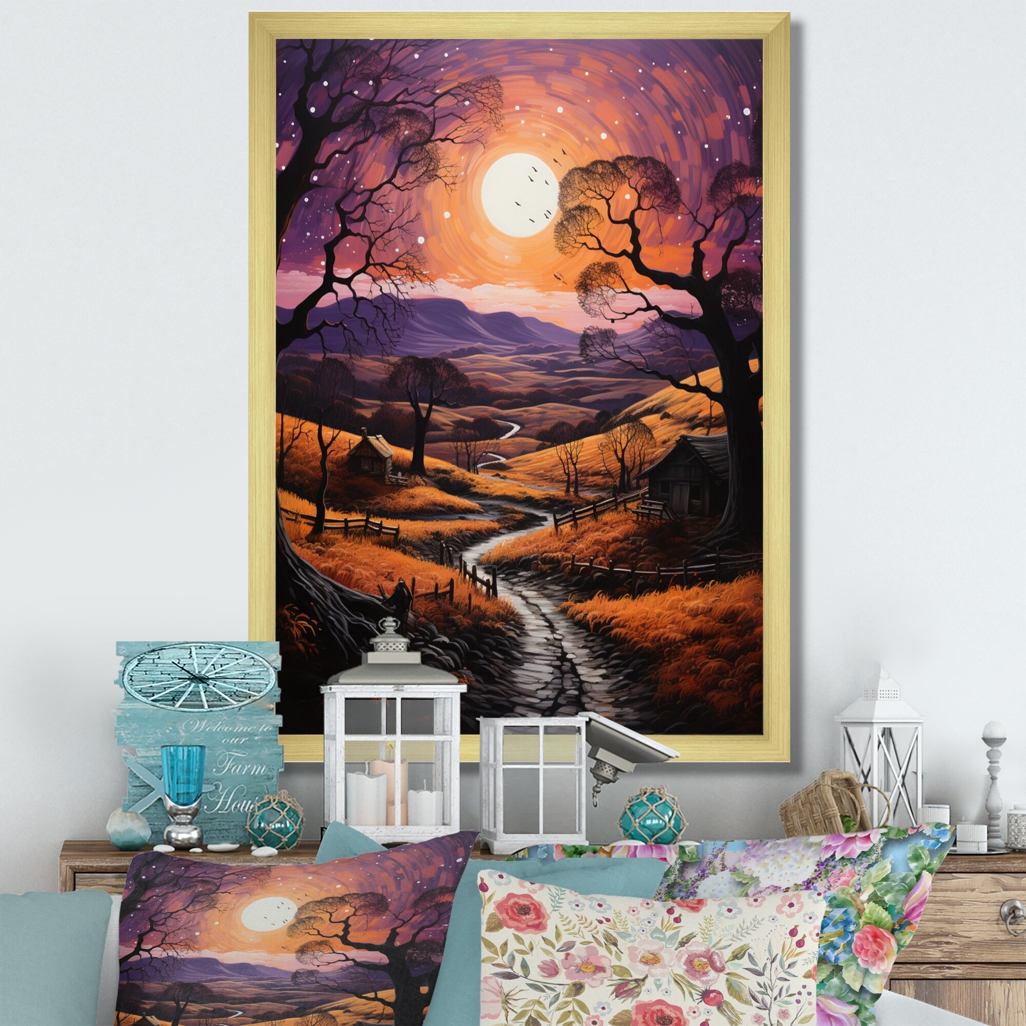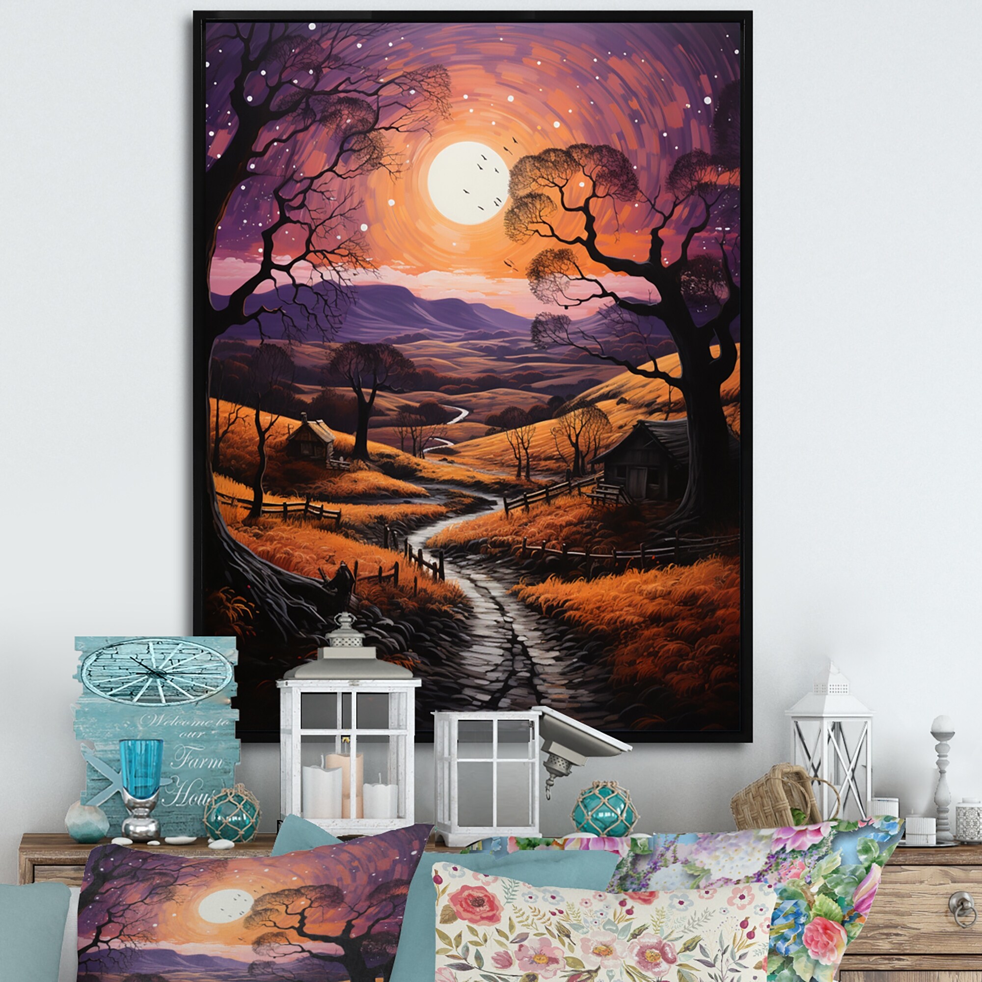 Designart "Countryside Crimson Dusk Landscape II" Countryside Framed Canvas Art Print