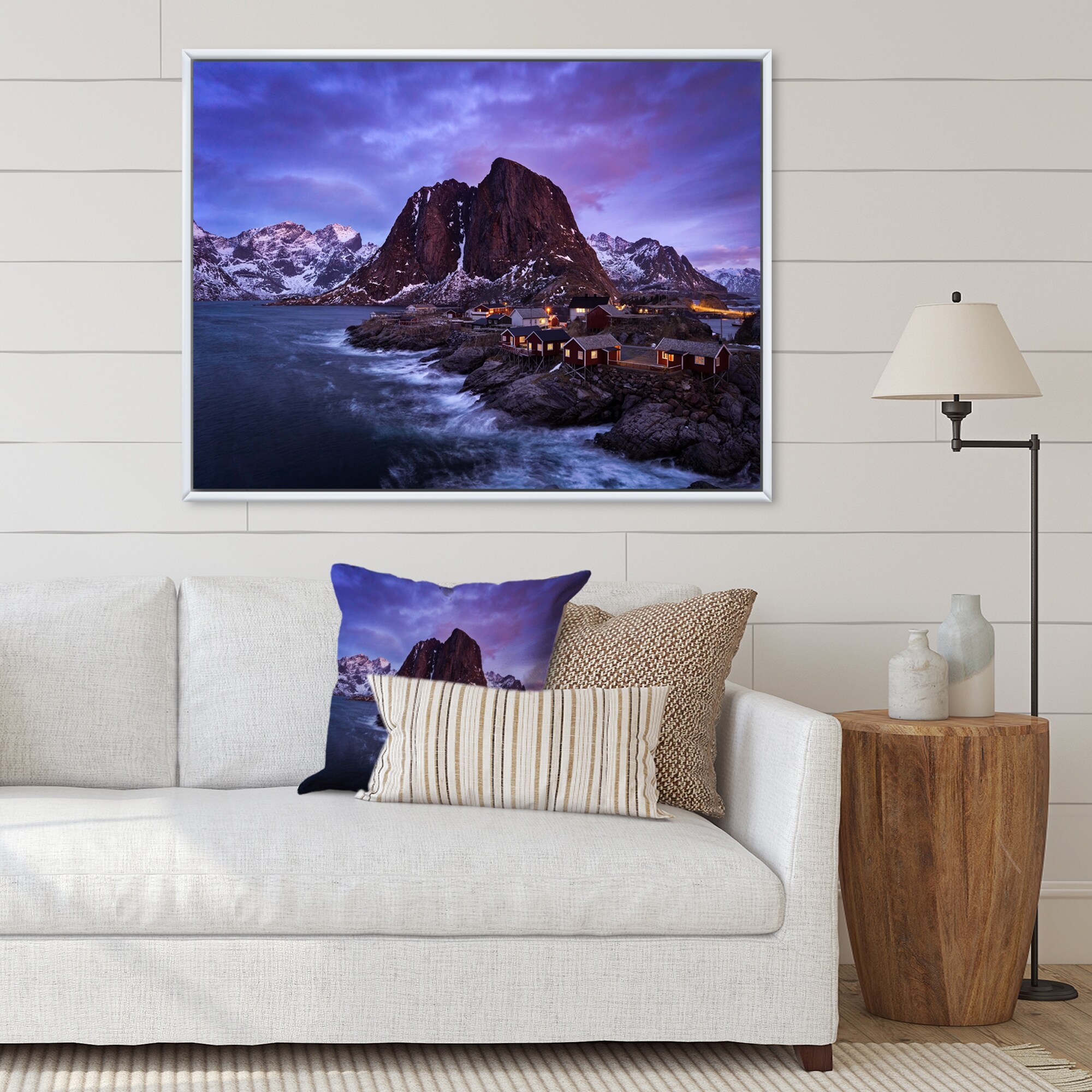Designart "Fishing Village With Houses in Homnoya At Dusk" Nautical & Coastal Framed Canvas Wall Art Print