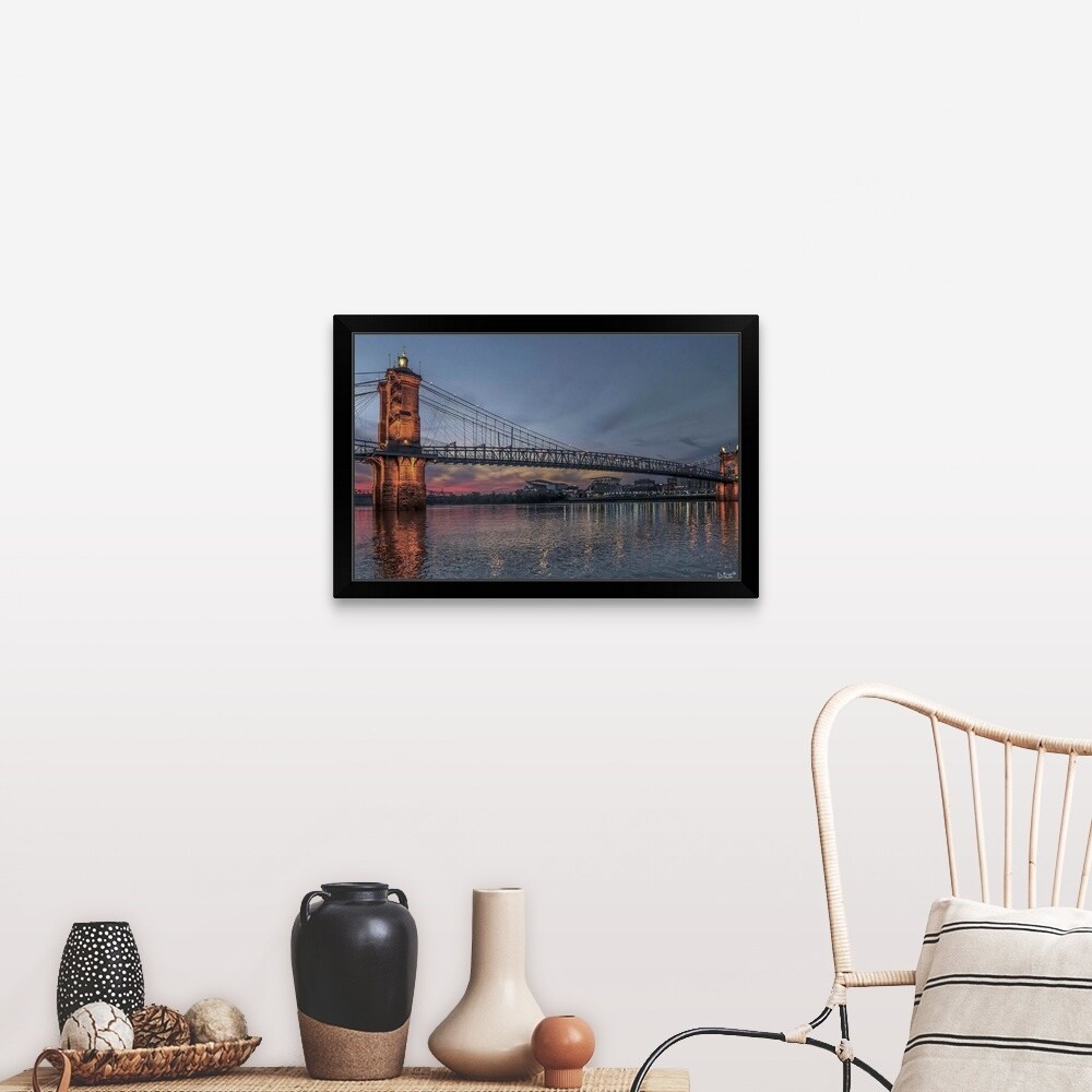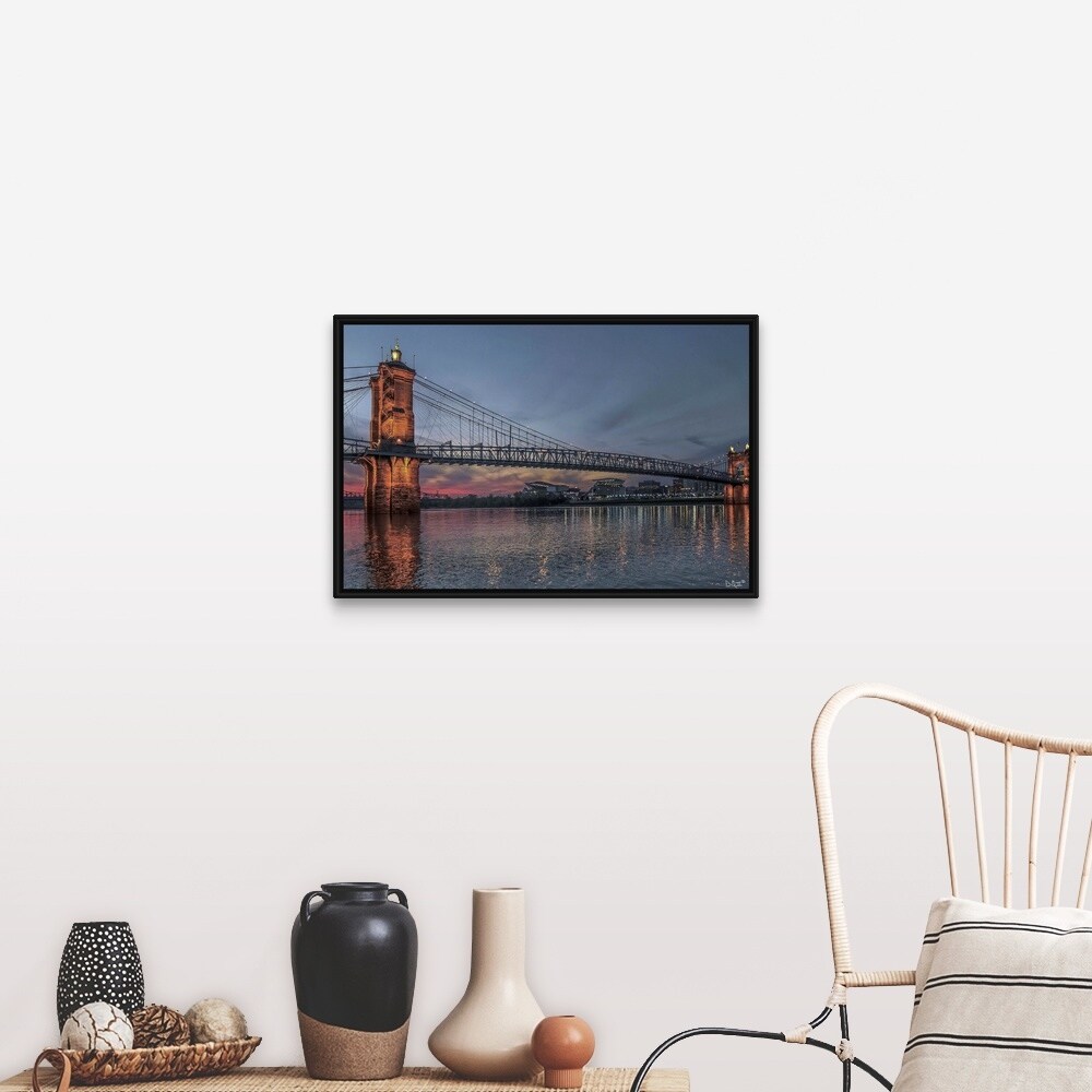 "Suspension Bridge at Dusk" Black Float Frame Canvas Art