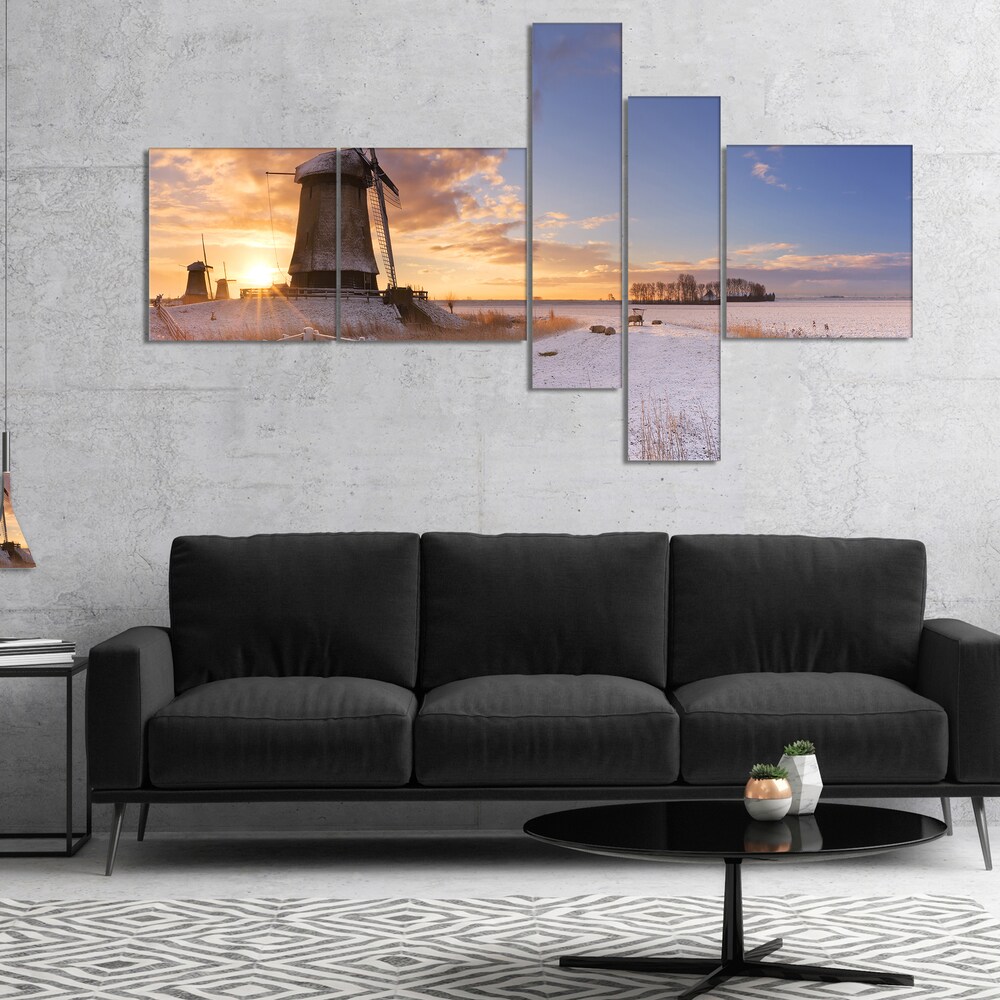 Designart "Dutch Windmills Panorama" Abstract Artwork Print on Canvas