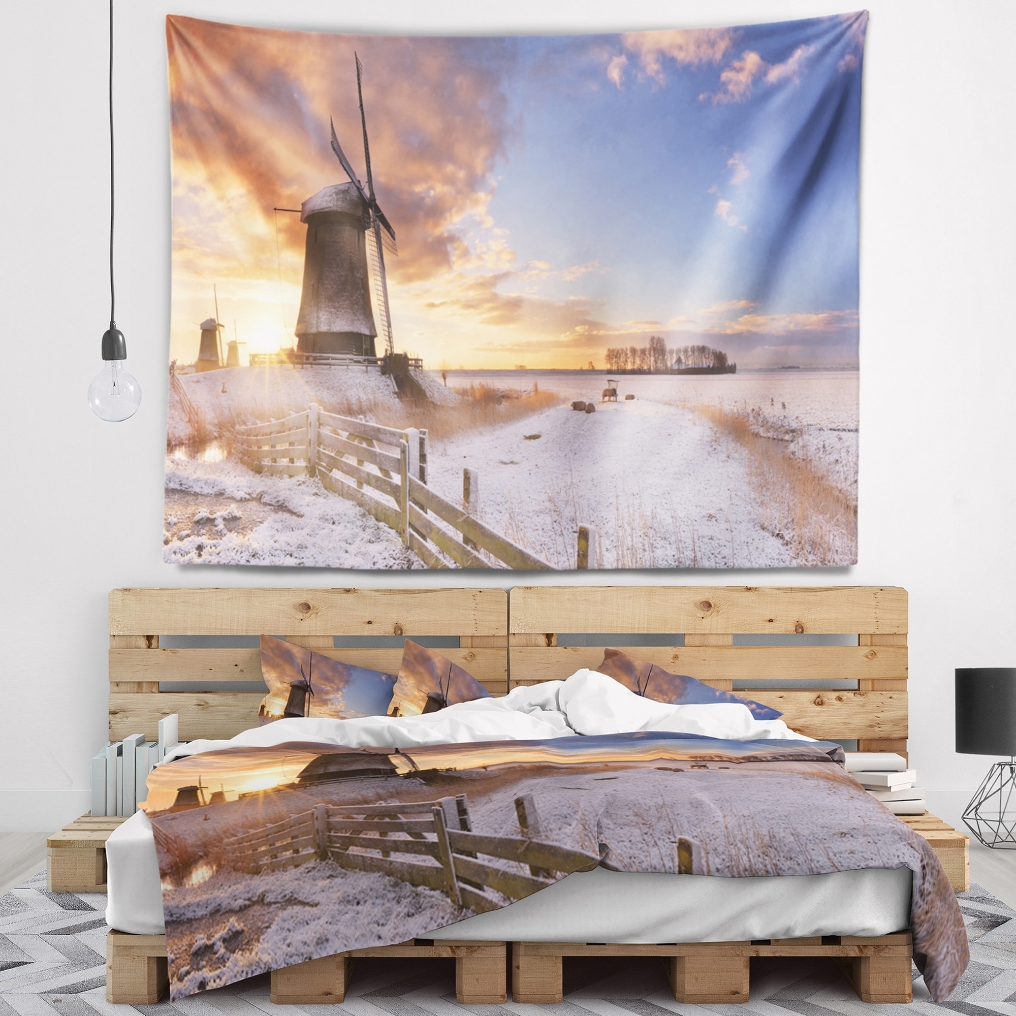 Designart 'Dutch Windmills at Sunrise' Abstract Wall Tapestry