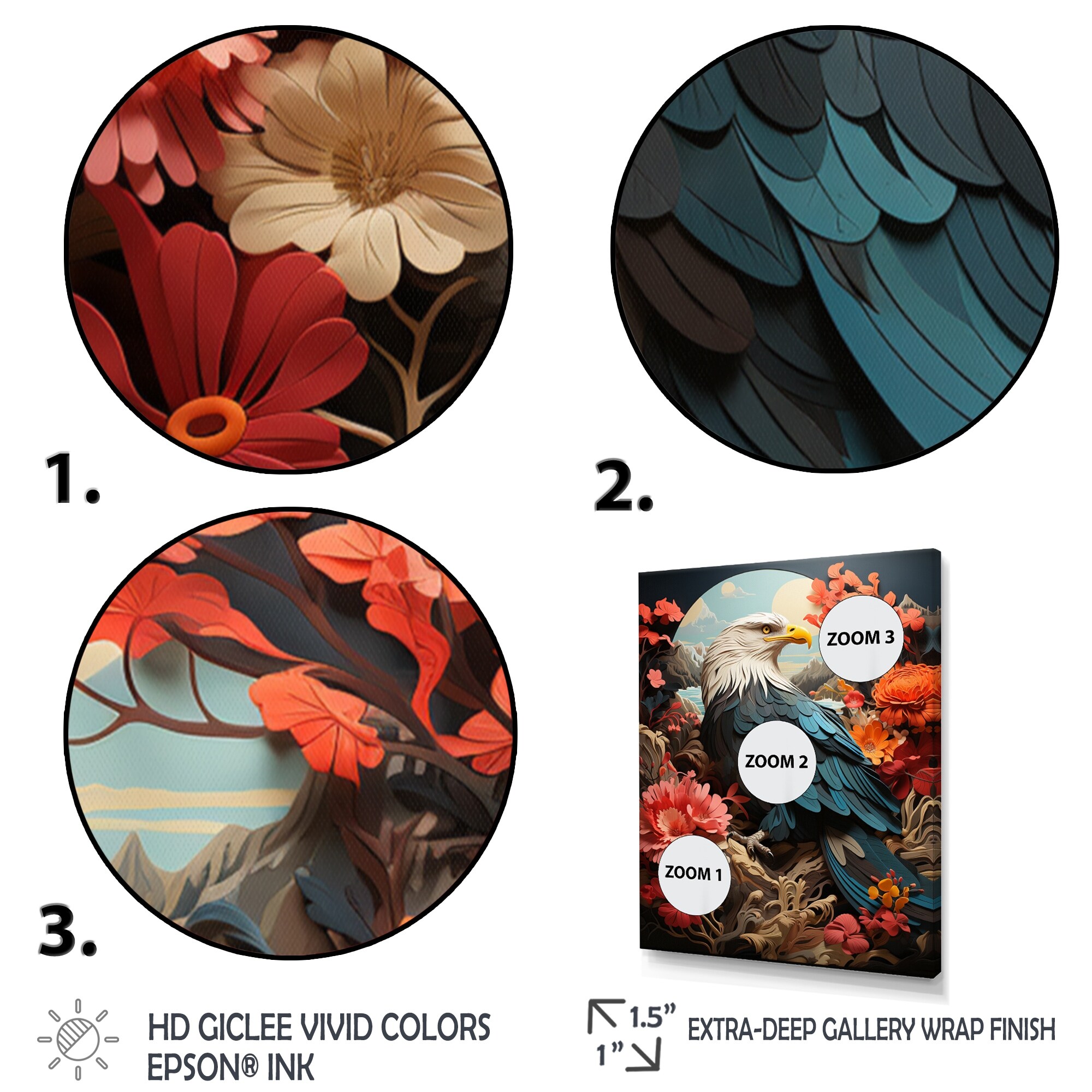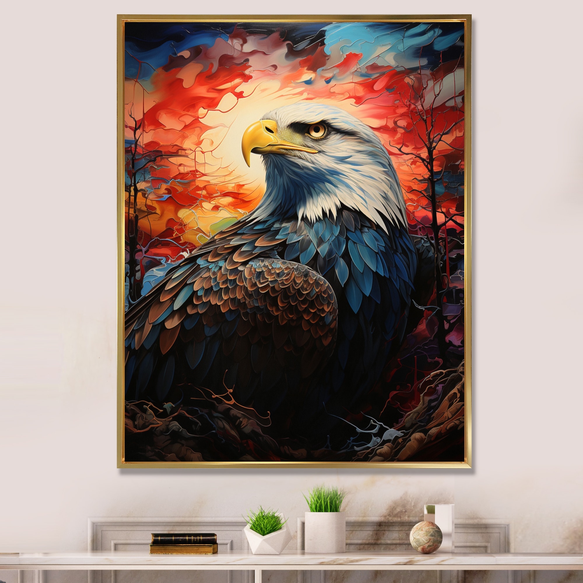 Designart "Western Canyon Eagle Echoes Papercut II" Western Framed Wall Art Prints