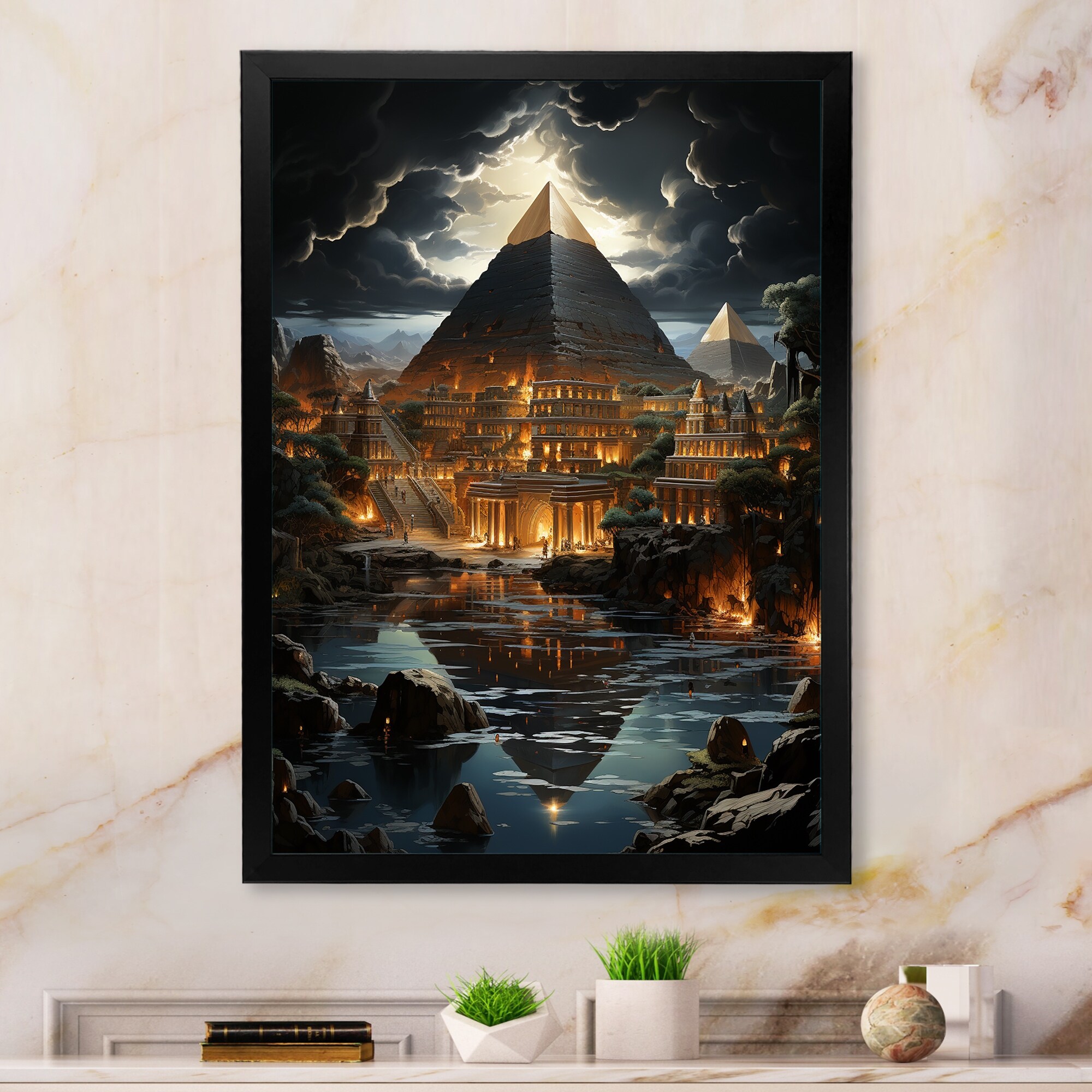 Designart "Pyramid Ancient Echoes II" Egypt Framed Canvas Wall Art