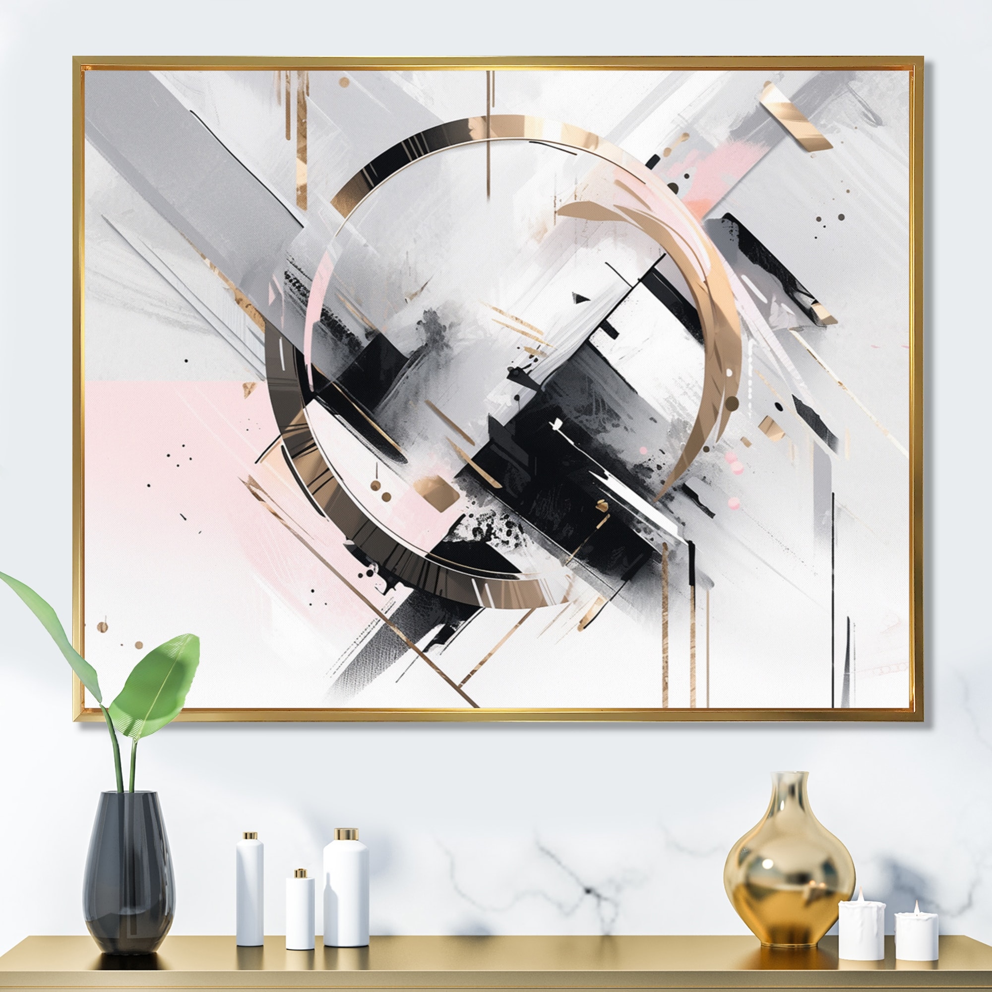 Designart "Pink And Grey Mosaic Echoes II" Cubism Framed Canvas Wall Art