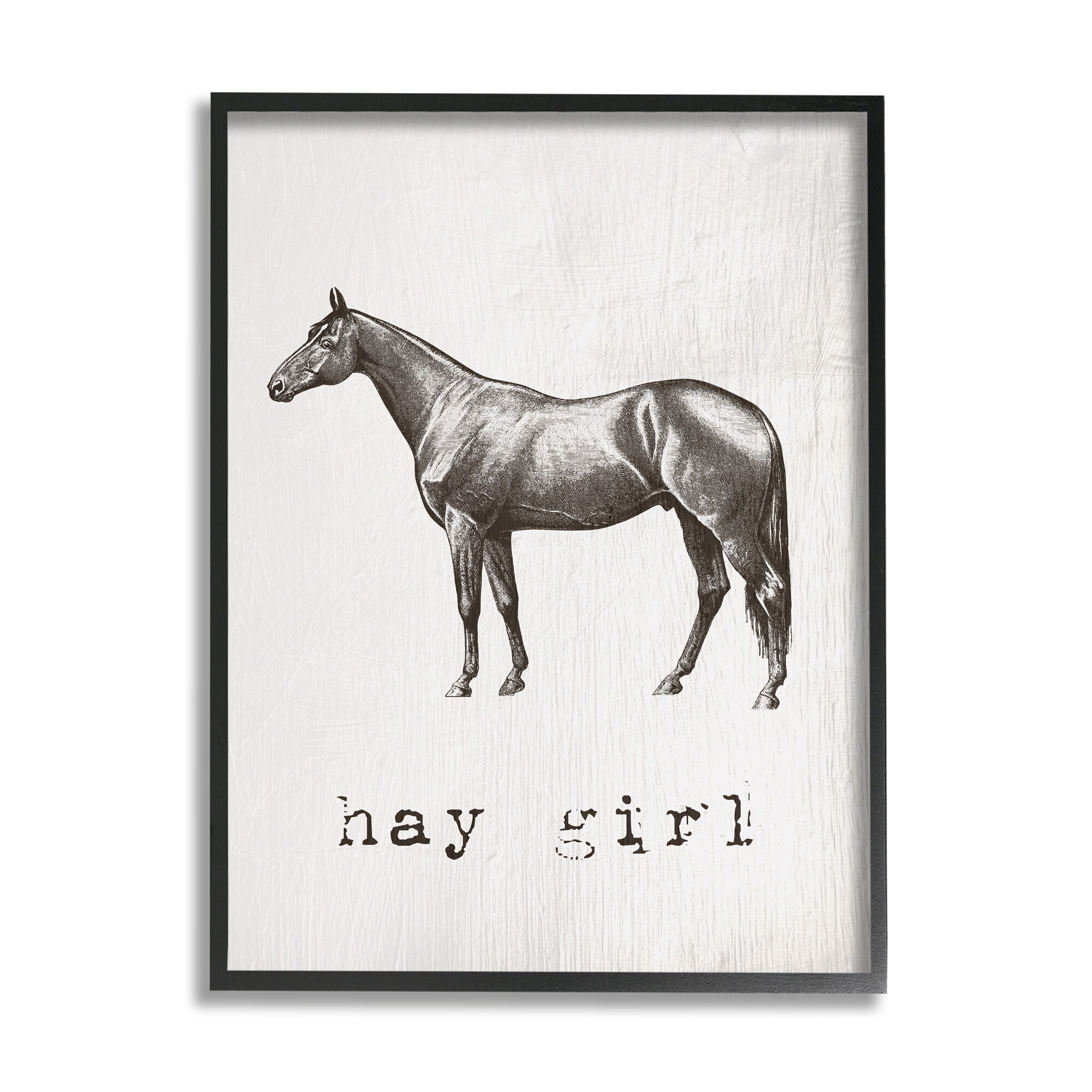 Stupell Industries Hay Girl Funny Horse Pun Vintage Equestrian Portrait Framed Wall Art - Grey