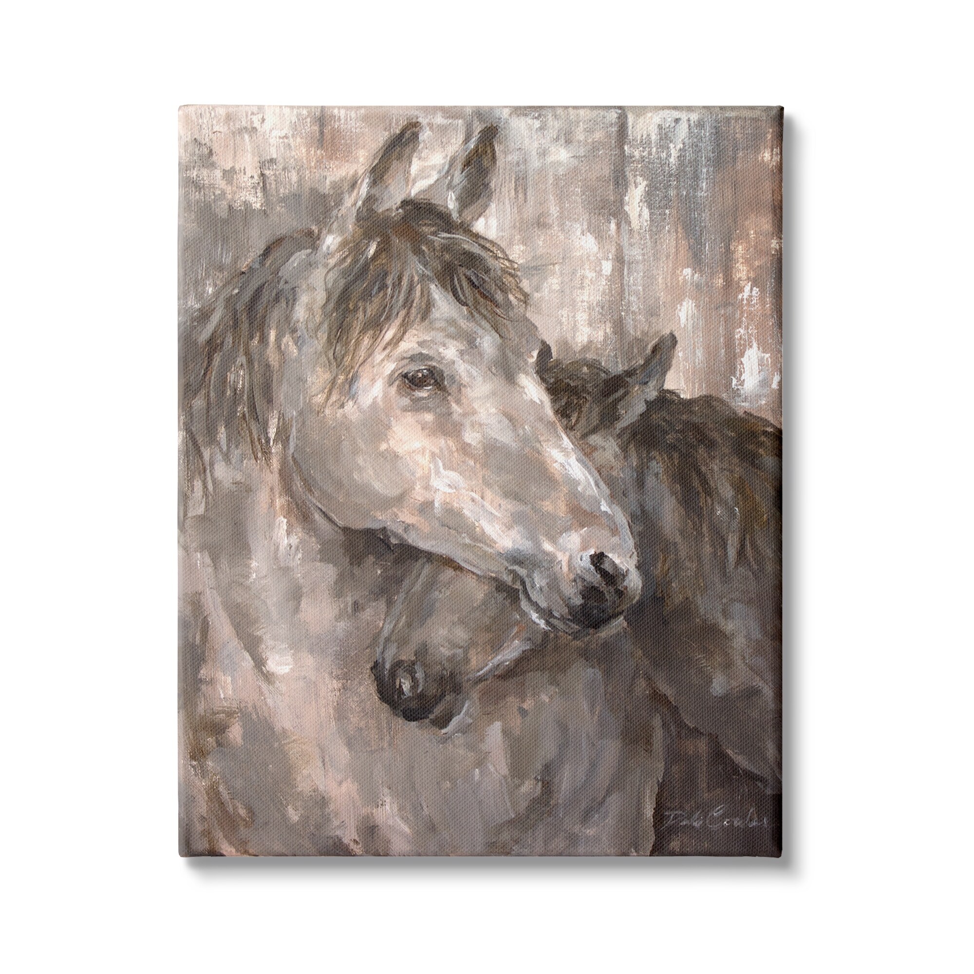 Stupell Rustic Equestrian Painting Tender Horses Portrait Brown Beige Canvas Wall Art - White