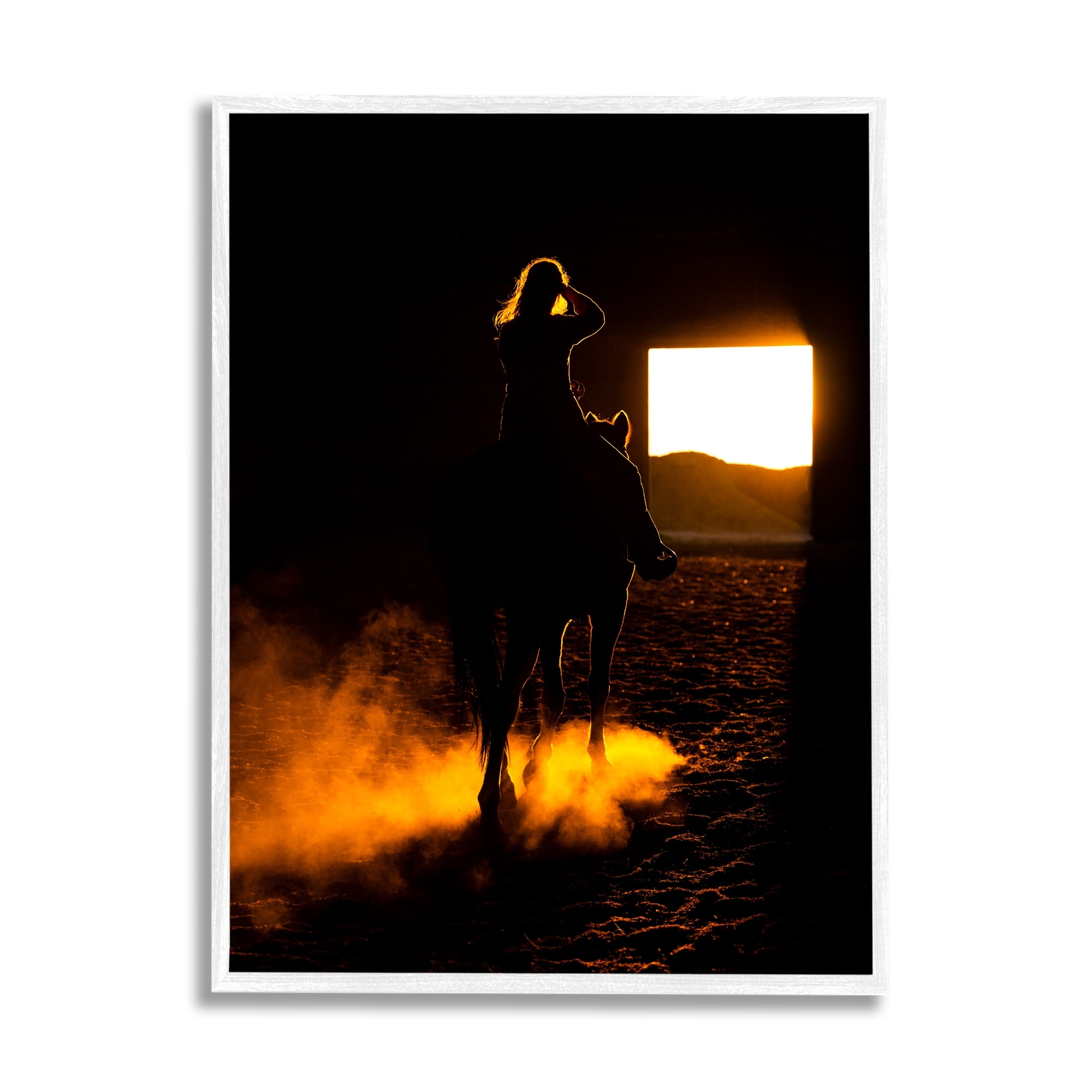 Stupell Industries Equestrian Horse Jockey Silhouette Vivid Light Flare Framed Wall Art, Design by Steve Smith - Orange