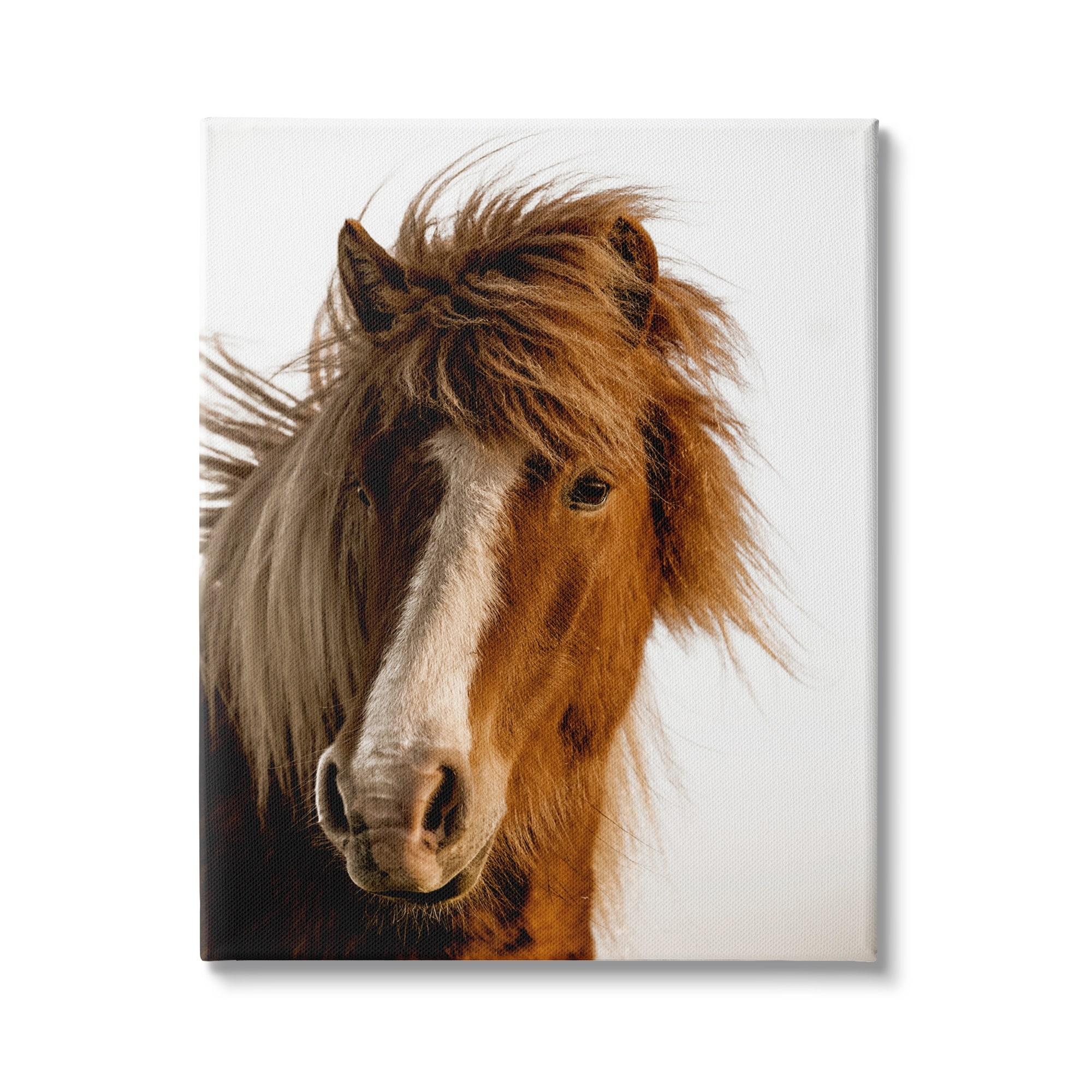 Stupell Long Mane Horse Equestrian Portrait Brown Animal Photograph Canvas Wall Art - White