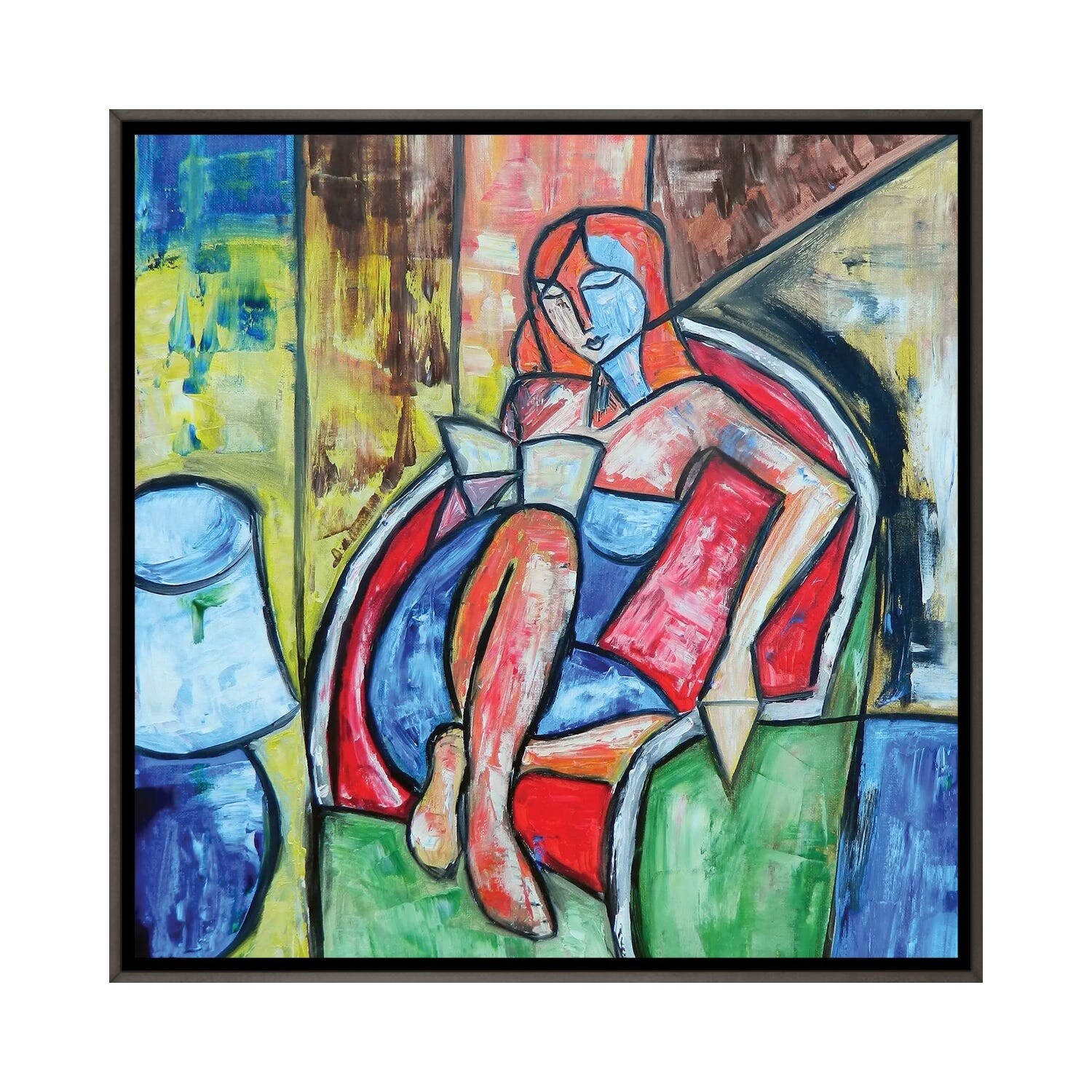 iCanvas "Cozy Evening Brunette Girl" by LaLana Arts Framed Canvas Print