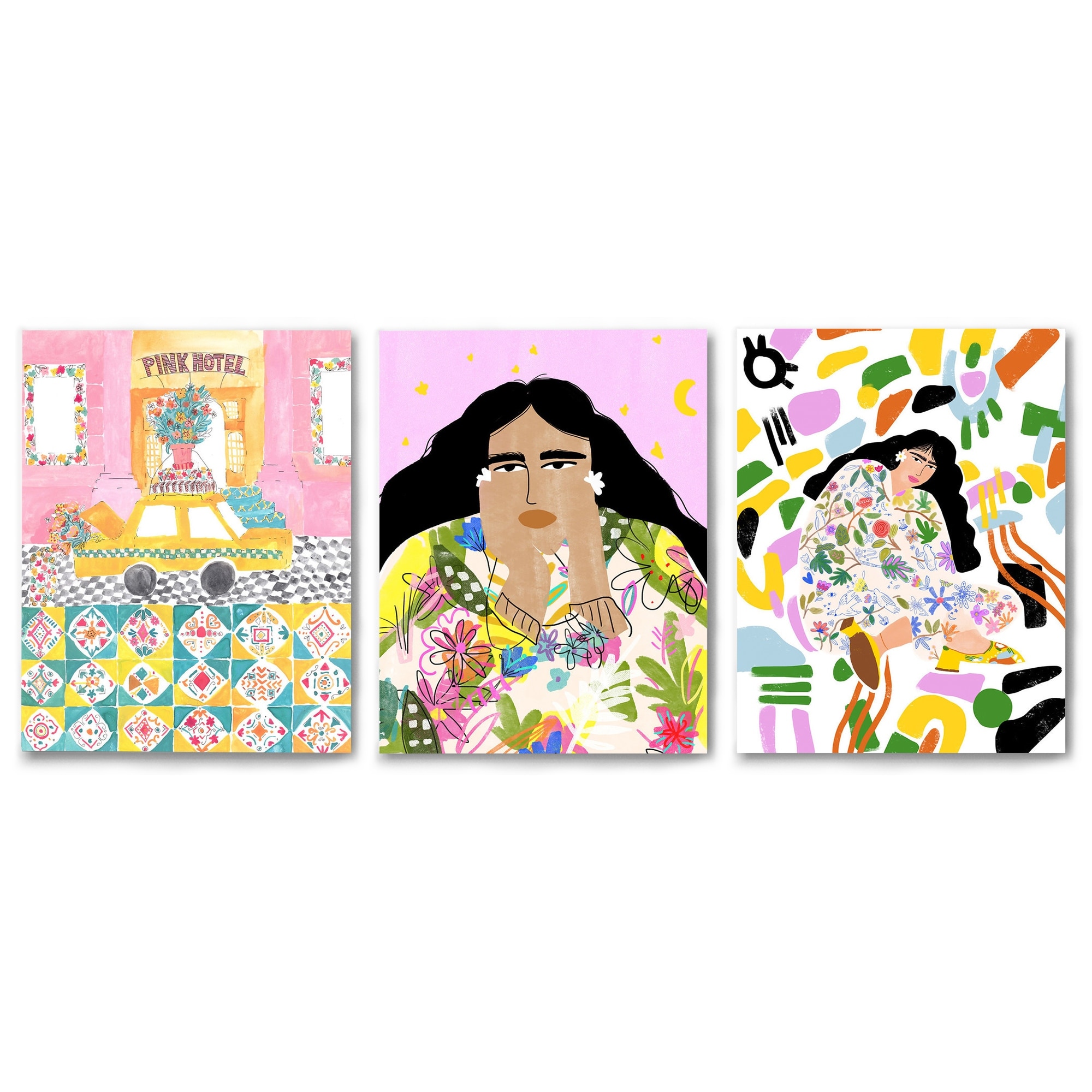 Canvas Triptych Modern Female Illustrations by Alja Horvat - 3 Piece Art Set