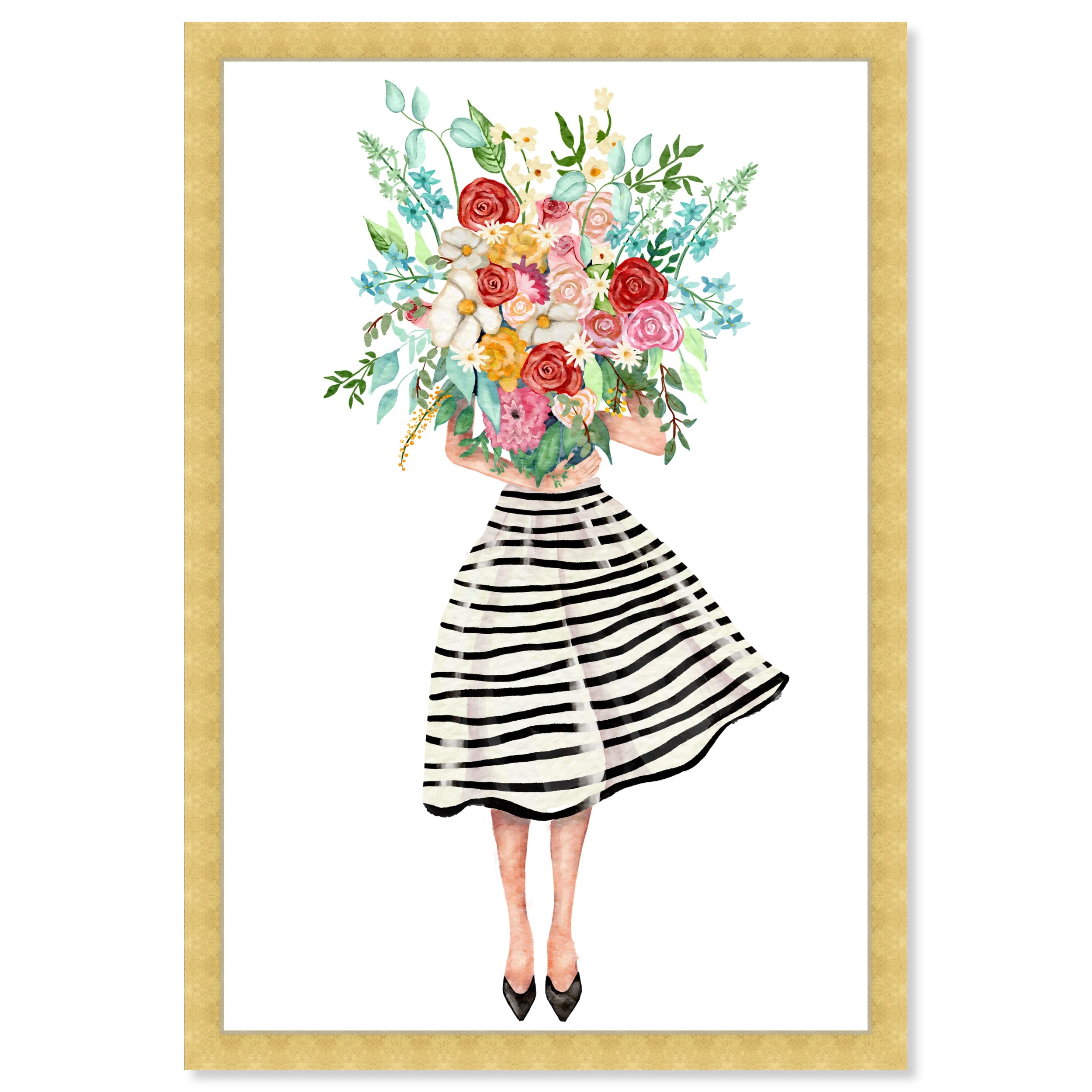 Oliver Gal 'Chic Female With Floral Bouquet' Fashion And Glam White Wall Art Canvas Print