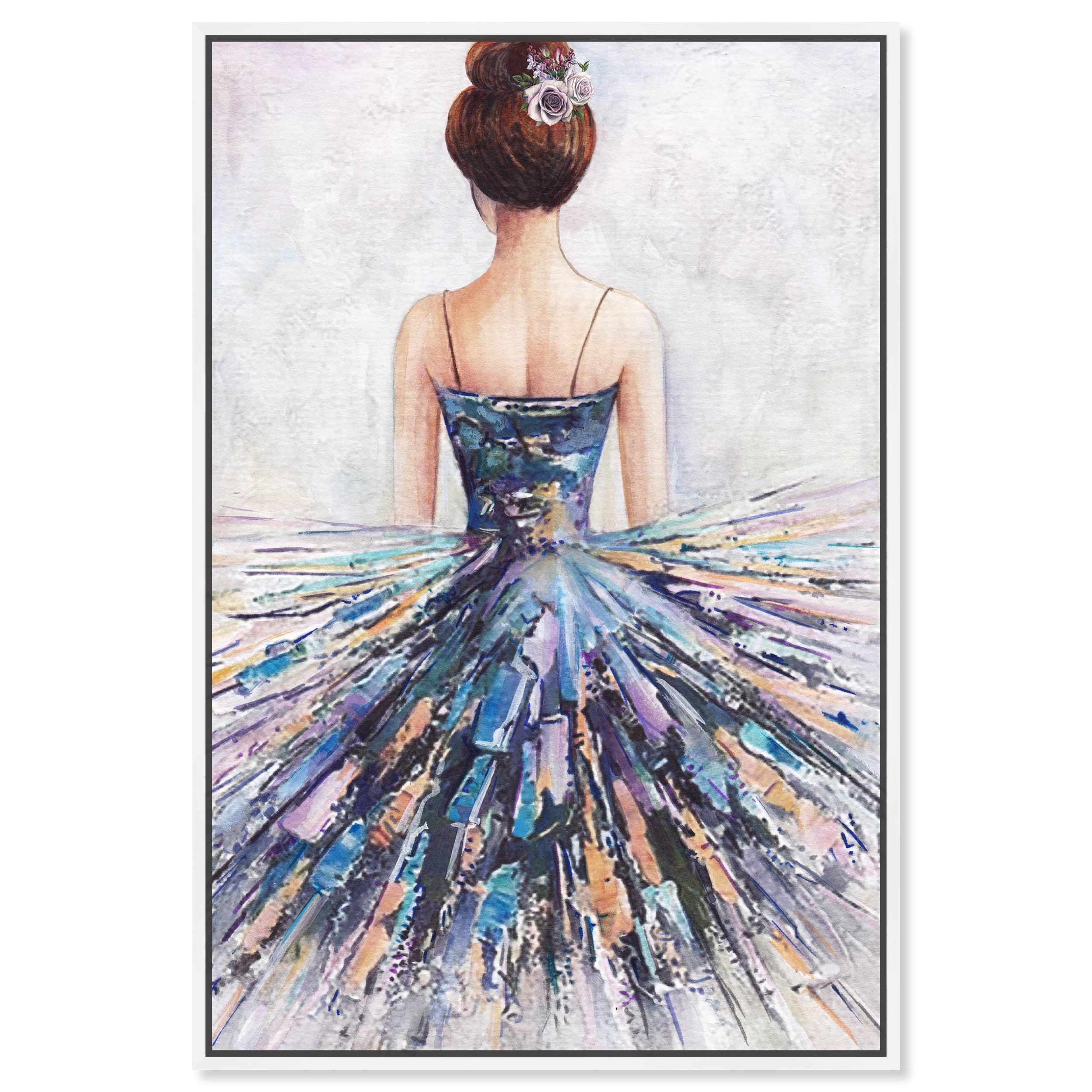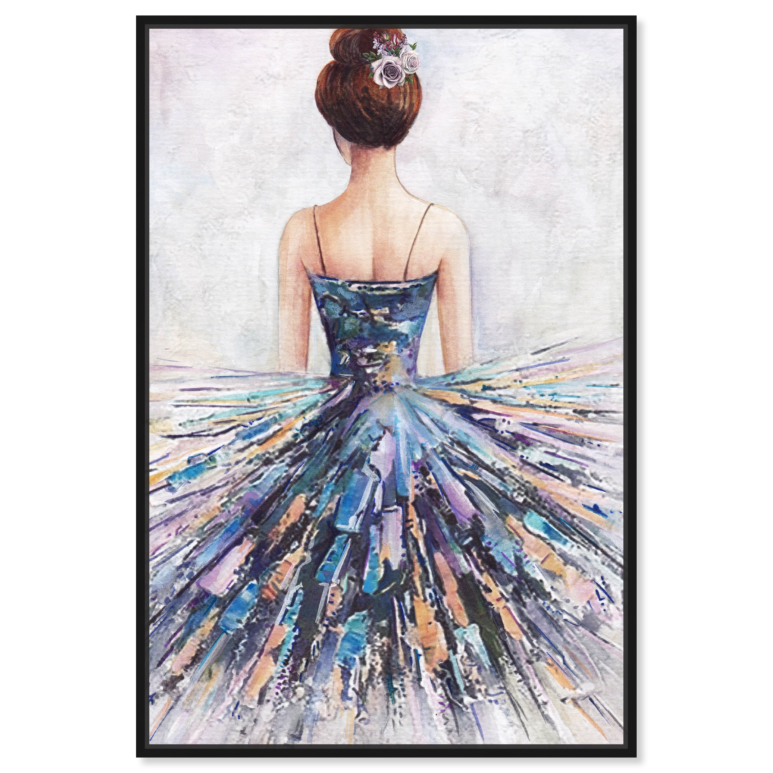 "Lovely Lady", Elegant Female Gown Glam Blue Framed Canvas Wall Art Print for Bedroom