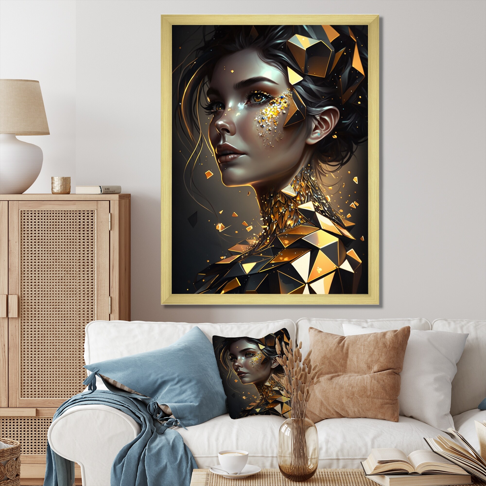 Designart "Gold Crystal Female Portrait Iii" Modern Woman Framed Wall Art for Living Room