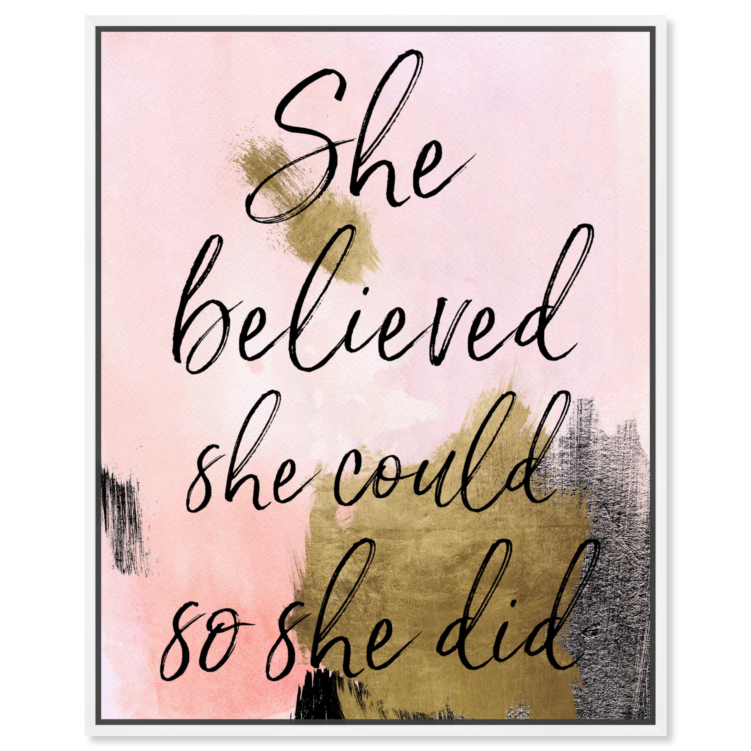 So She Did, Powerful Female Motivation Modern Pink Canvas Wall Art Print for Bedroom