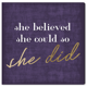 She Could She Did Purple, Strong Female Motivation Modern Purple Canvas Wall Art Print for Living Room